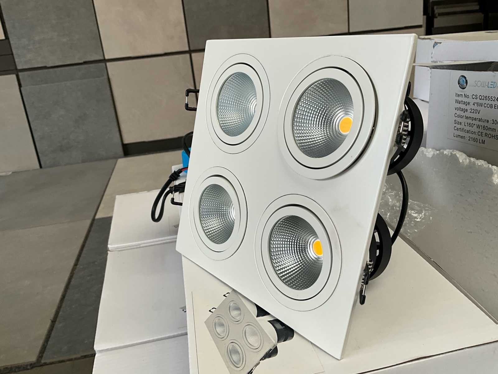 Set van 43 nieuwe stukken No Merk: SowLed Model: 4x6W 3000K COB Spanning: 220V Kleurtemperatuur: 3000K Lichtbron: COB Lichtopbrengst: 2160lm Dimbaar: true Wattage: 24W