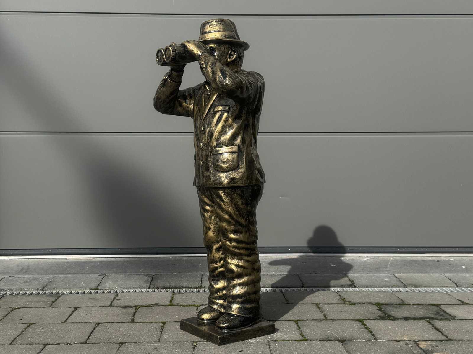 Man met Verrekijker Goud H90cm Polystone / Polyester No Hoogte: 90 Leveringsvoorwaarden: Niet gefundeerd - onverpakt