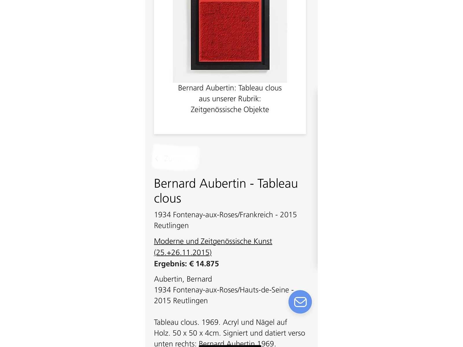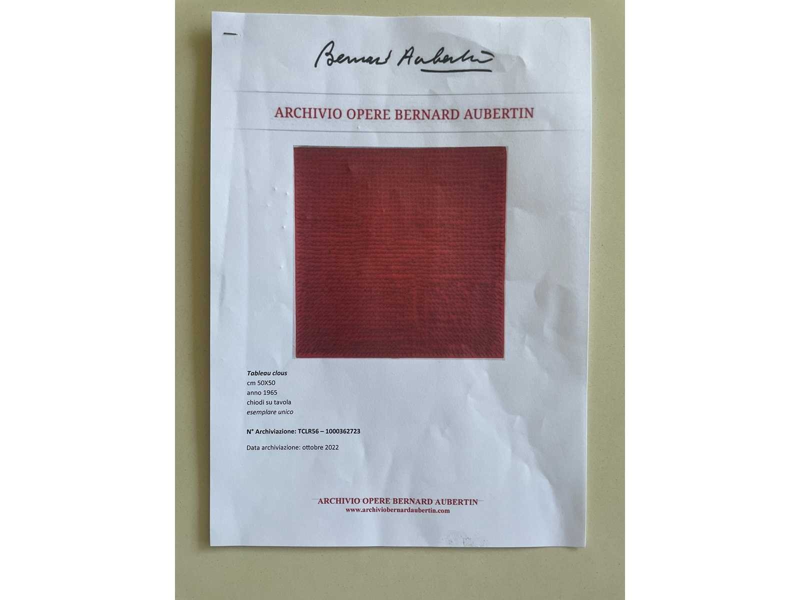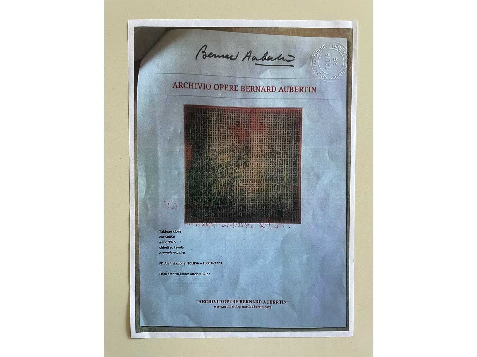 (origineel) Uniek werk Tableau Clous Datum : 1965 Afmeting : 3x0x50cm Getekend met de hand Werk in perfecte staat Met certificaat (Werk ingeschreven in het archief Bernard Aubertin TCLR56-1000362723) Nee Kunstenaar: Bernard Aubertin