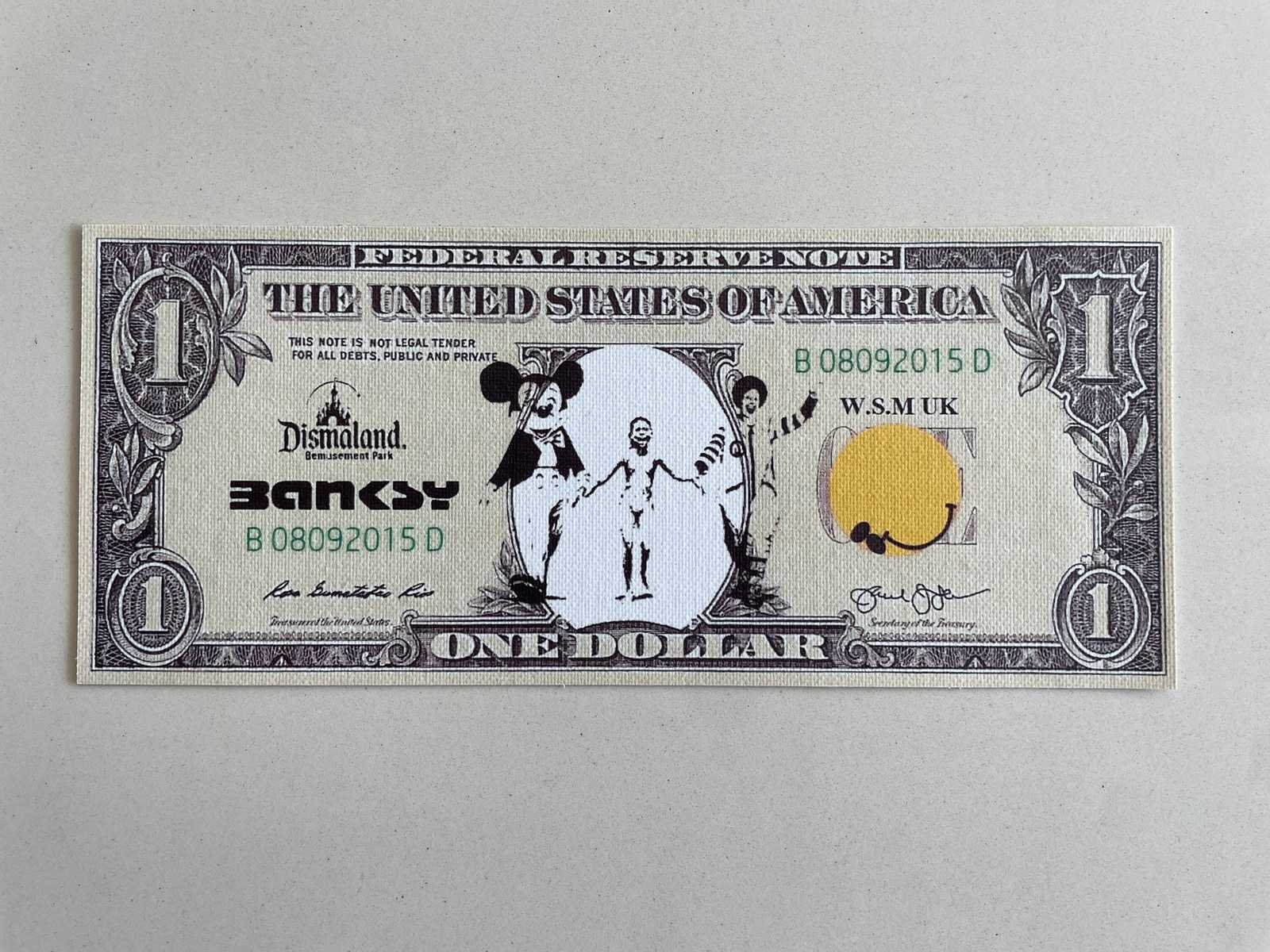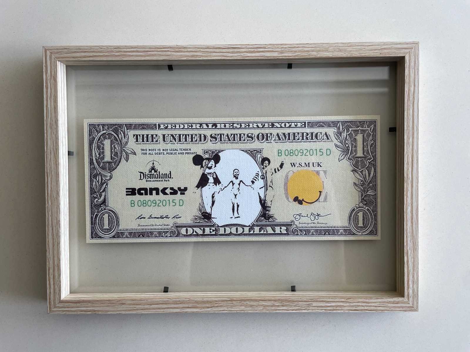 (After) Bankbiljet Afmeting kader:22,5x 31,5 Ingekaderd (dubbelzijdig)Nieuwstaat Zonder Certificaat Ter info : Voor de werken van Dismaland of het Walled Off Hotel zijn er geen echtheidscertificaten uitgeschreven / En pest control levert geen documenten af. Nee Kunstenaar: Banksy
