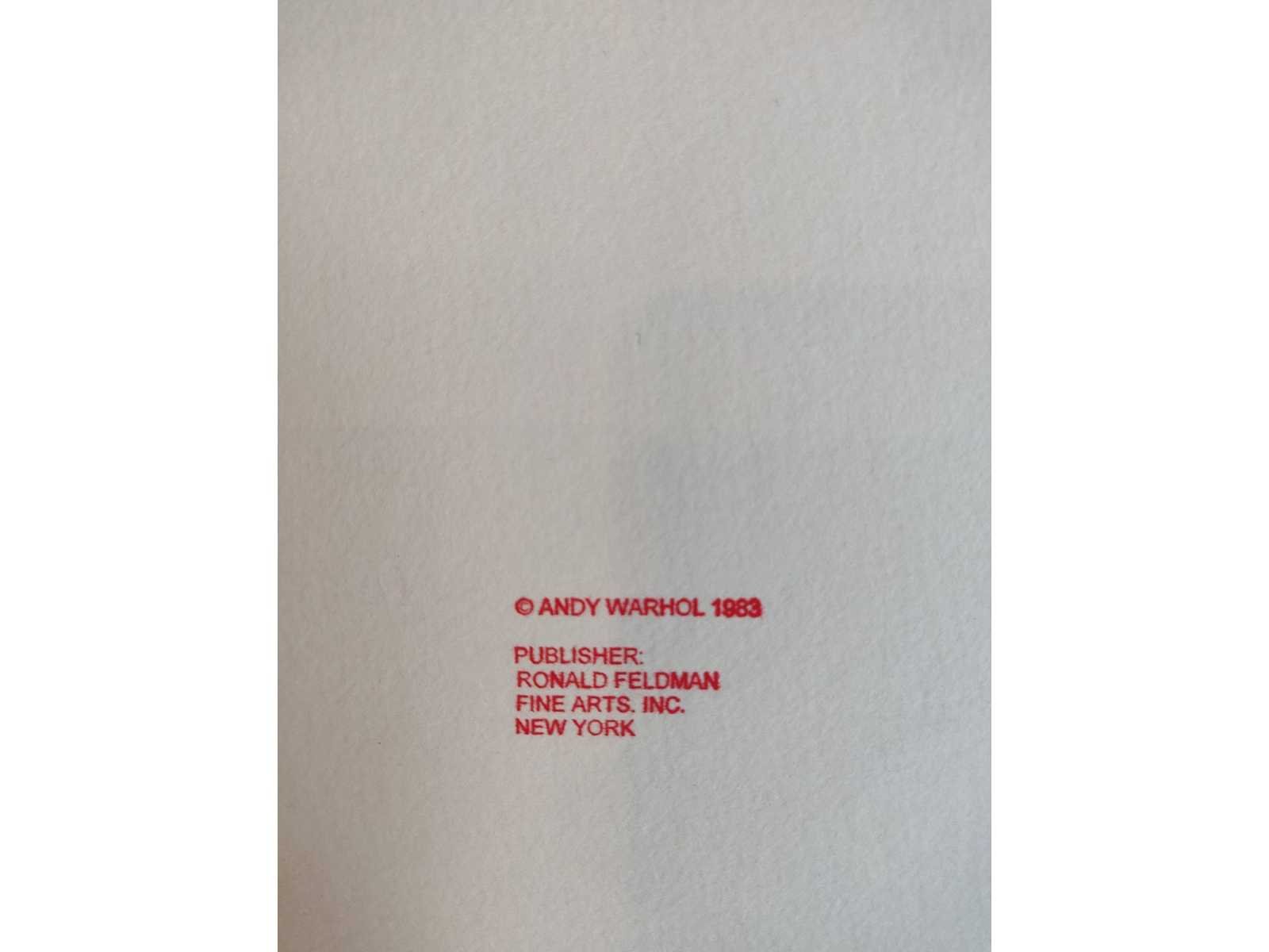 (After) Serie : Endangered species PANDA Datum : 1983 Techniek : Zeefdruk in kleur op Lenox Museumbord Afmeting werk : 96,5x96,5cm Proefdruk : Niet genummerd en niet getekend Uitgegeven door Ronald Feldman,Fine Arts Inc, New York Rode inktstempel op achterzijde : Andy Warhol 1983 Publisher Ronald Feldman Fine Arts.Inc. New York Blinddrukstempel van drukker Rupert Jasen Smith (New York) in linker beneden hoek. Dit werk is afgeleid van de originele versie.Kleine gebreken rechtvaardigen dat het om een proefdruk gaat. Niet ingekaderd Perfecte staat Nee Kunstenaar: Andy warhol