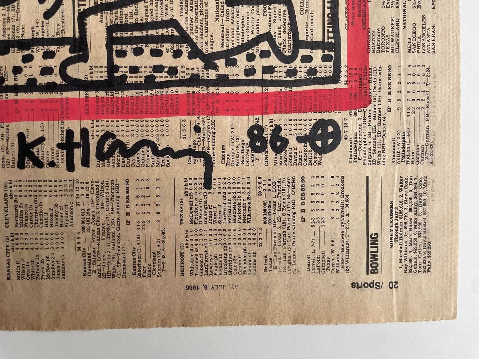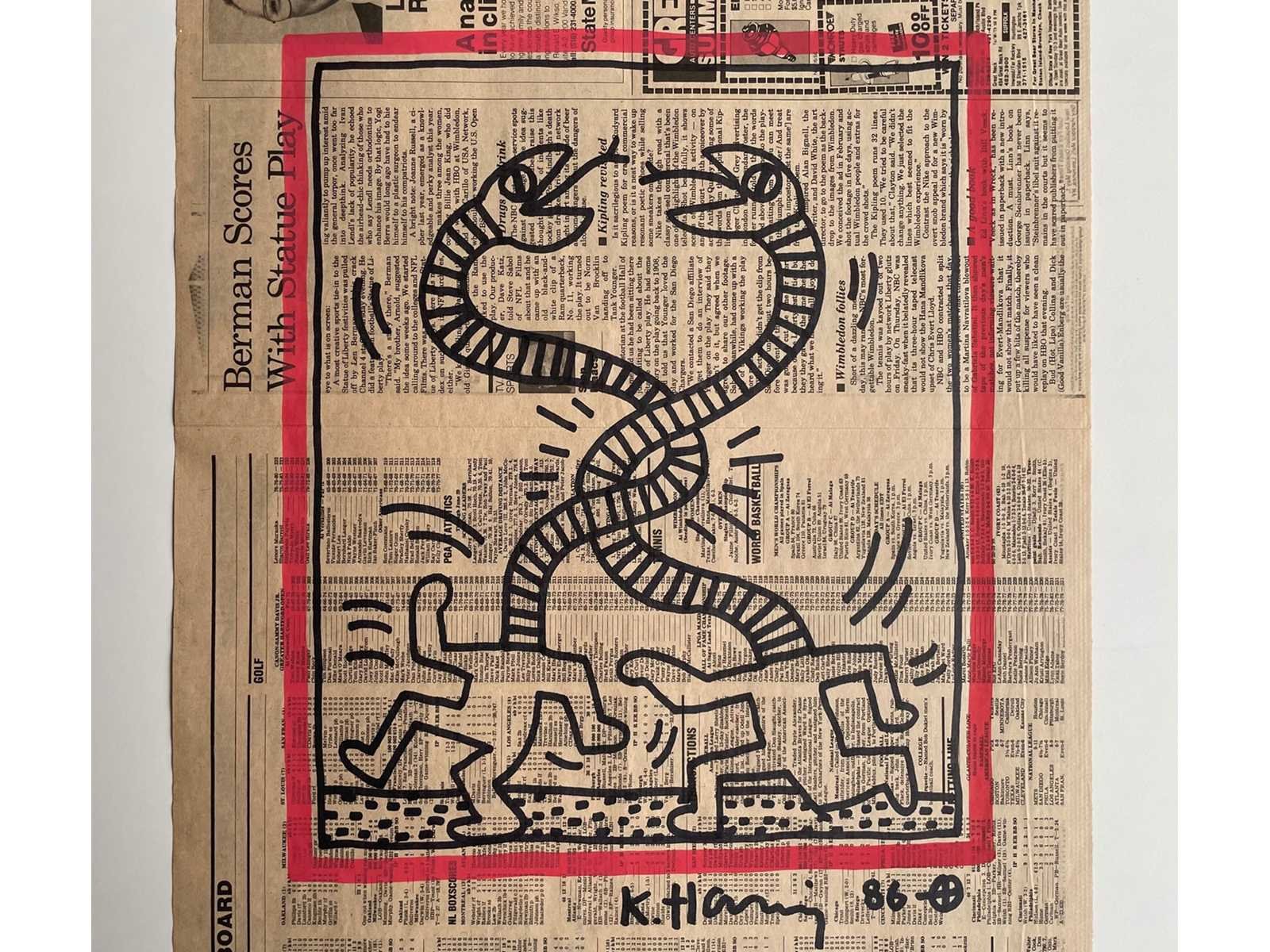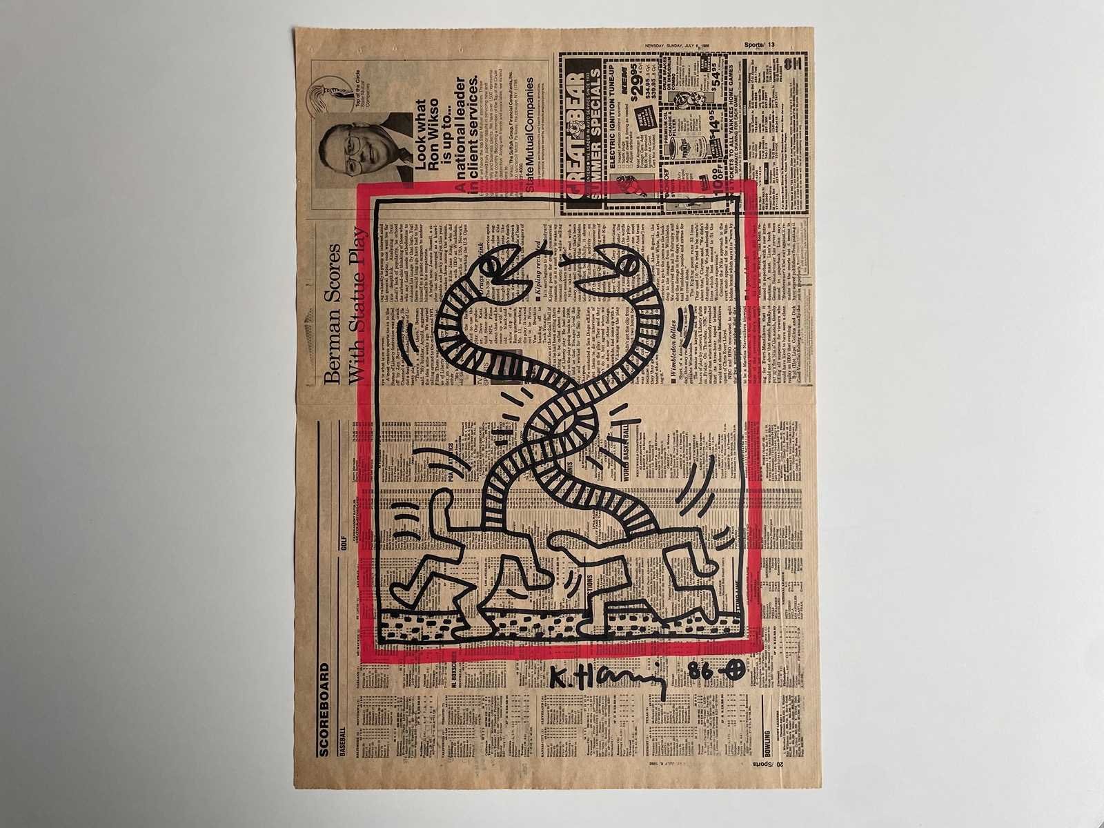 (After) Stift tekening op krantenpapier Afmeting werk : +-32x47cm Zonder Certificaat Nee Kunstenaar: Keith Haring