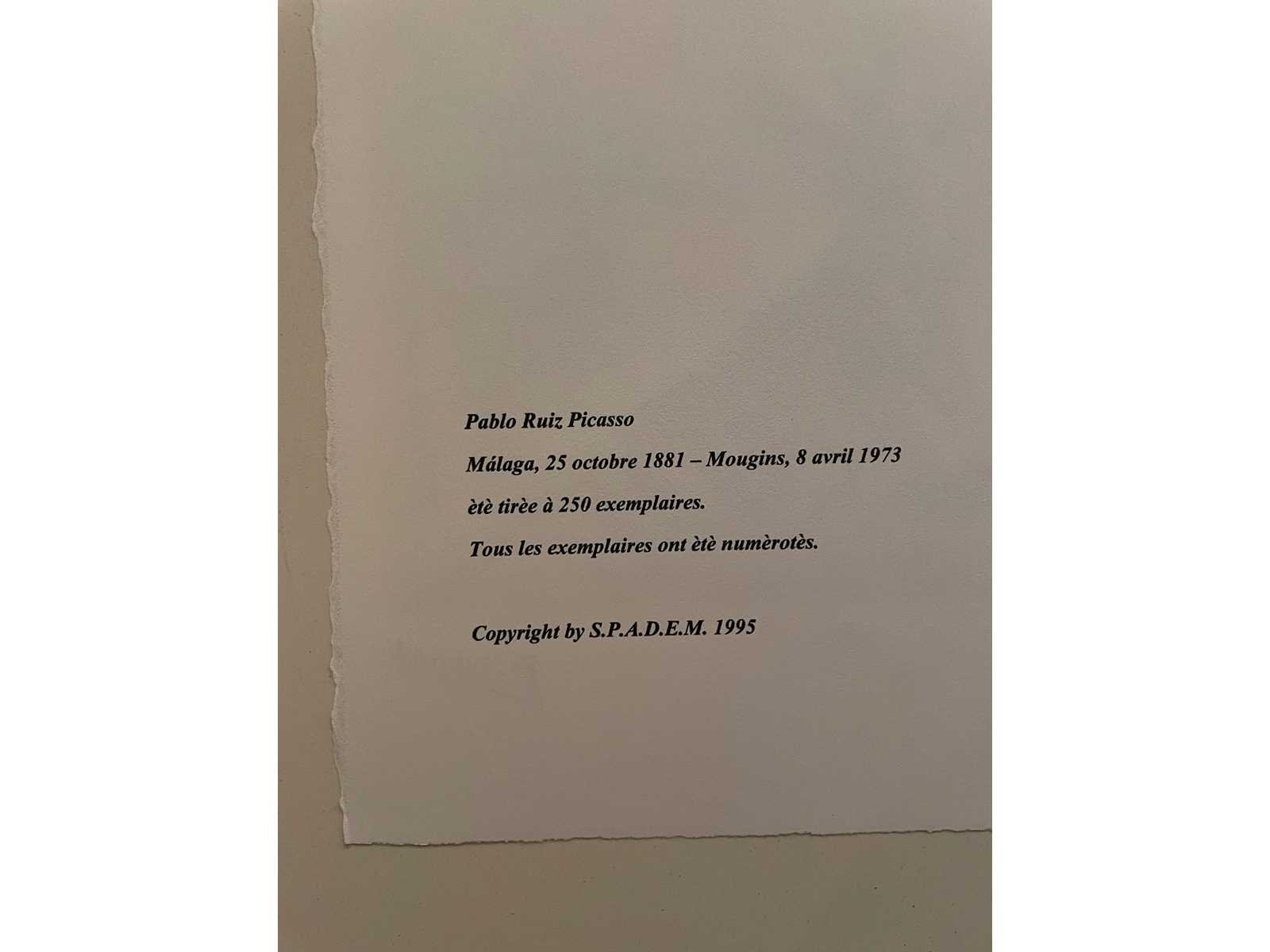 (After) Lithografie Genummerd in potlood : 92/250 Afmeting lithografie : 28 x 38 cm Droogstempel : Spadem - Paris Perfecte staat Zonder Certificaat Nee Kunstenaar: Pablo Picasso