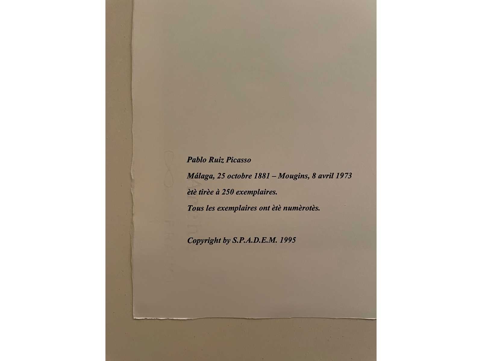 (After) Lithografie Genummerd in potlood : 213/250 Afmeting lithografie : 28 x 38 cm Droogstempel : Spadem - Paris Perfecte staat Zonder Certificaat Nee Kunstenaar: Pablo Picasso