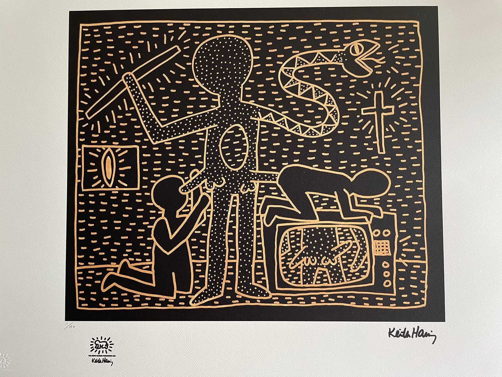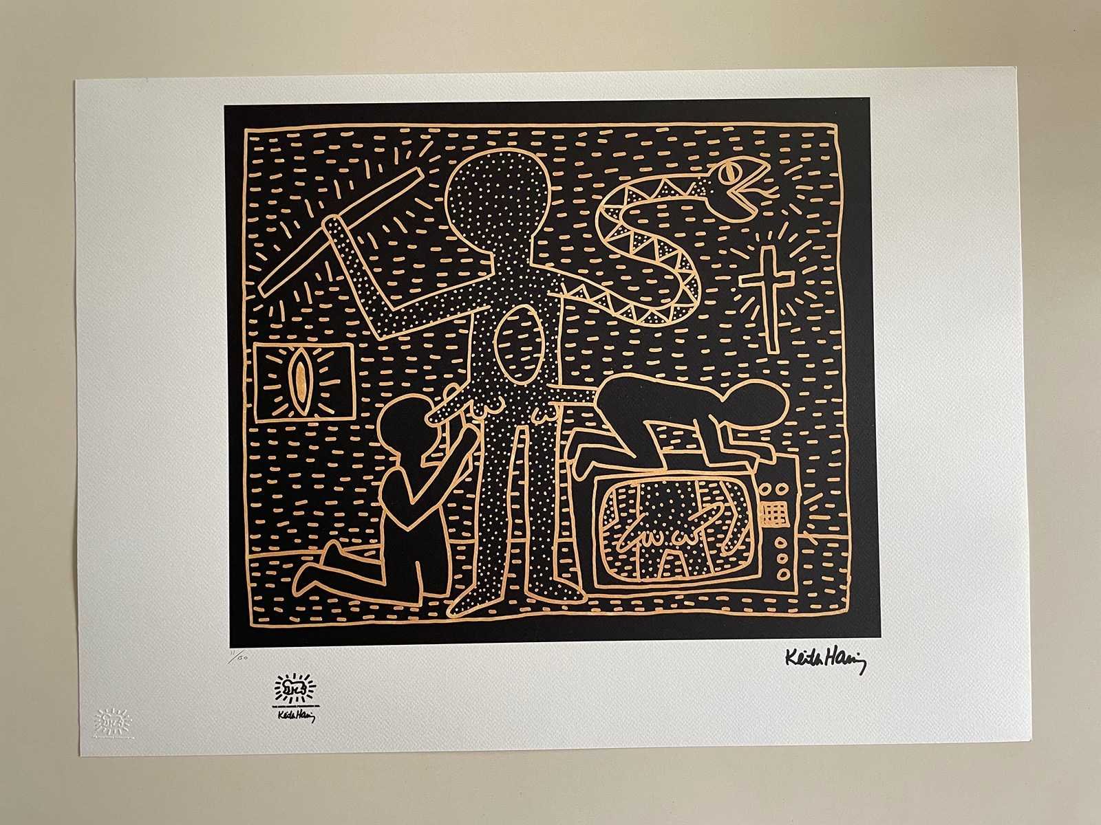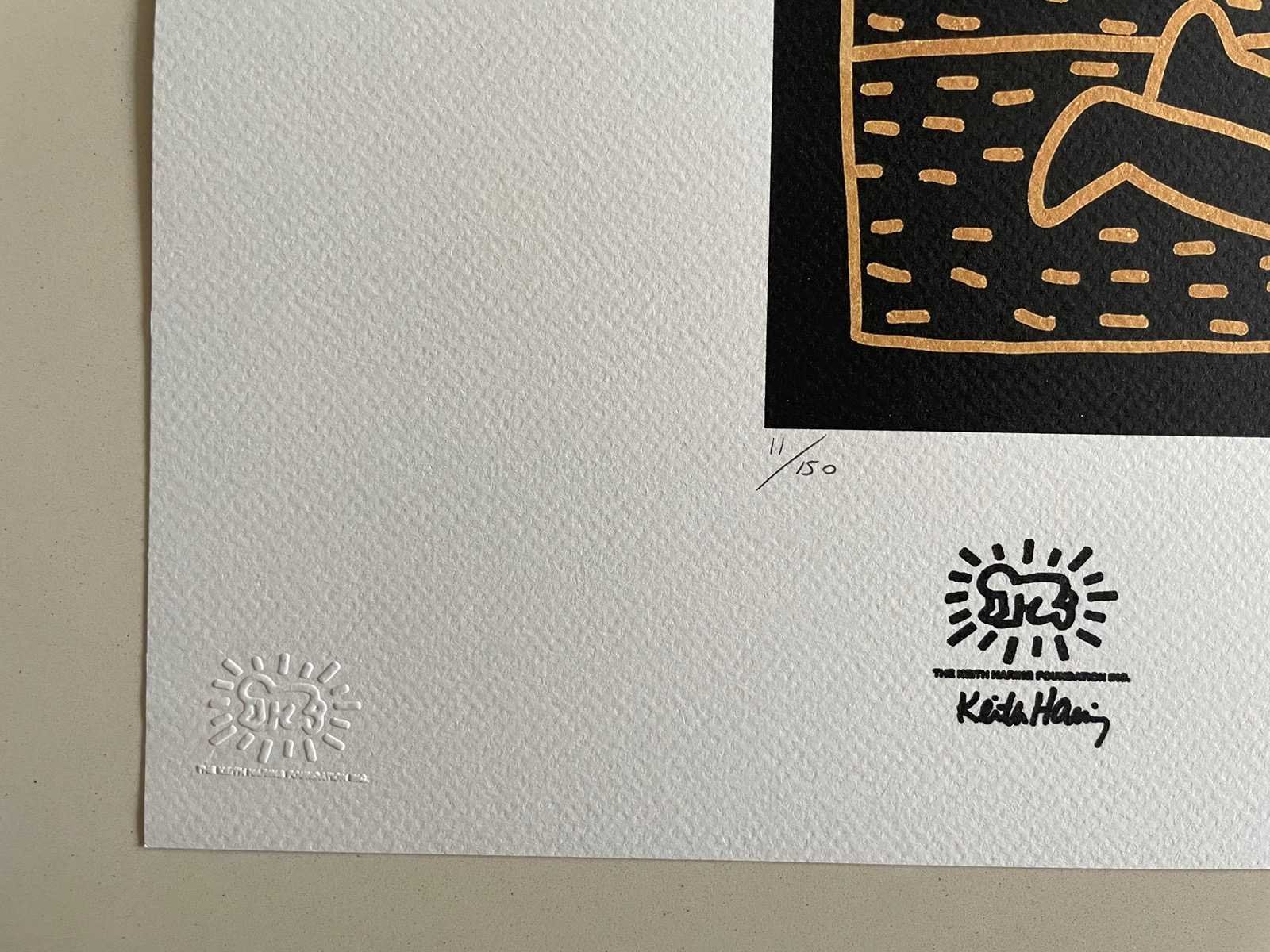 (After) Lithografie Getekend in de plaat Afmeting : 50x70cm Blinddrukstempel + inktstempel Keith Haring foundation Limited édition : 150 stuks Genummerd : 11/150 Nieuwstaat Zonder Certificaat Nee Kunstenaar: Keith Haring