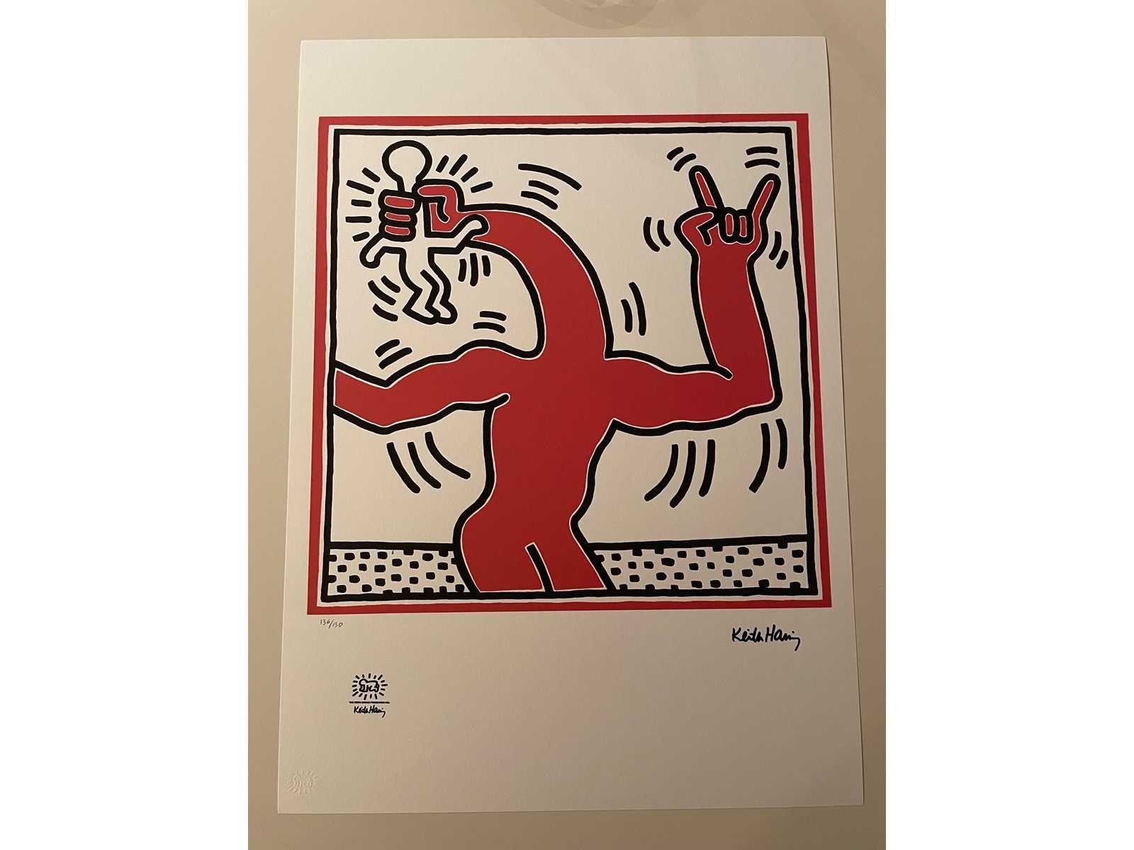 (After) Lithografie Getekend in de plaat Afmeting : 50x70cm Blinddrukstempel + inktstempel Keith Haring foundation Limited édition : 150 stuks Genummerd : 136/150 Nieuwstaat Zonder Certificaat Nee Kunstenaar: Keith Haring