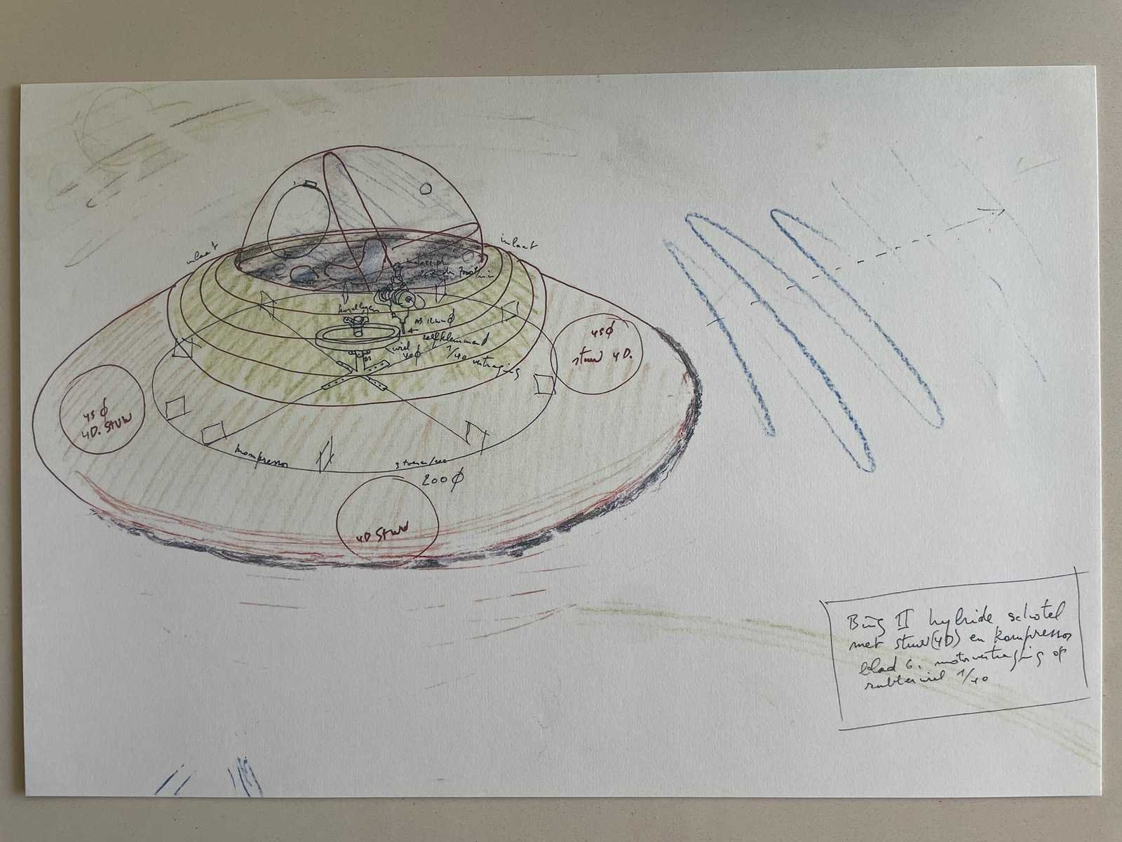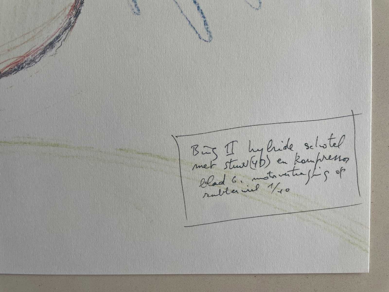 Bing II Offset Gedrukt op Biotop papier Werd in 2003 zeer grote oplages bij de standaard uitgegeven en waren in de druk gesigneeerd en genummerd. Dit exemplaar is uitzonderlijk omdat het niet getekend noch genummerd is in de plaat. Werd gedaan om origin eel te laten signeren. Afmetingen : 37x25cm Niet gesigneerd Zonder certificaat Nee Kunstenaar: Panamarenko