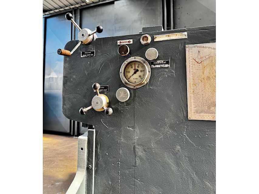 Voorzien van recht mes en gedeeld mes, 1, 2 of 3mm op een lengte van 200cm, 4mm op een lengte van 125cm Nee Merk: Colly Type: 50 TX 200 Capaciteit.: 50t Slag: 2000mm Aansluiting: 380V