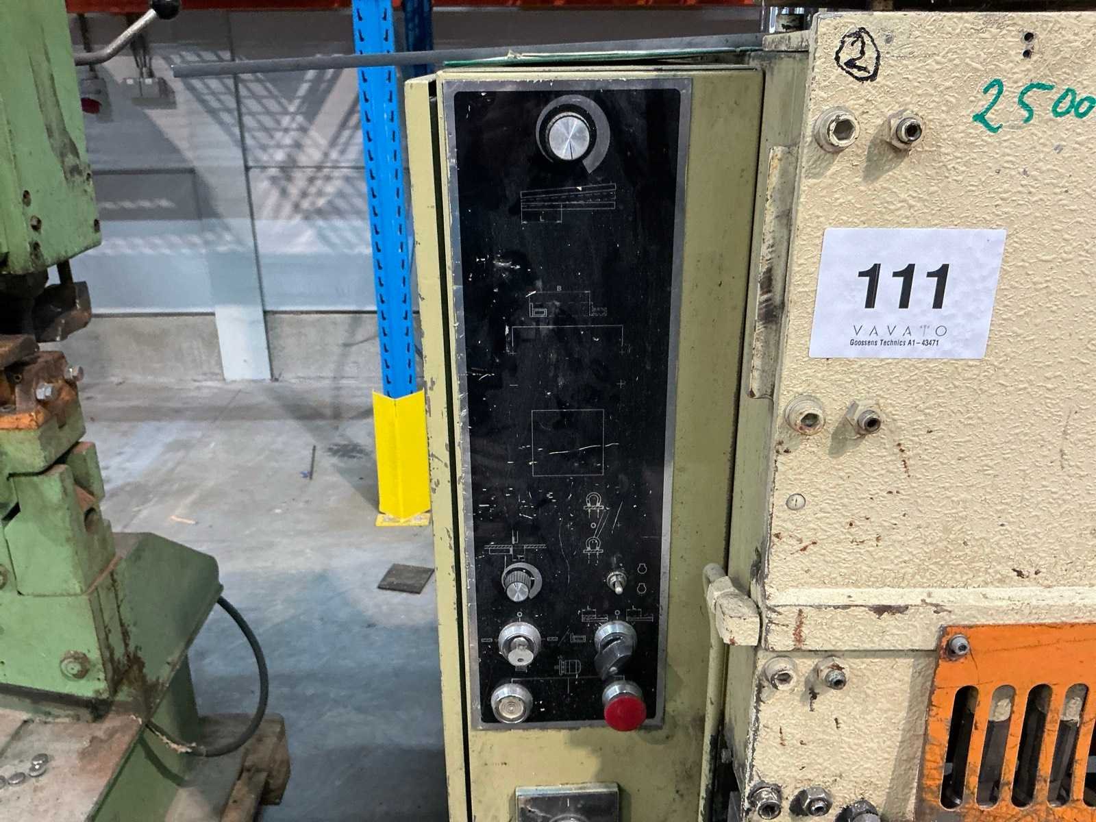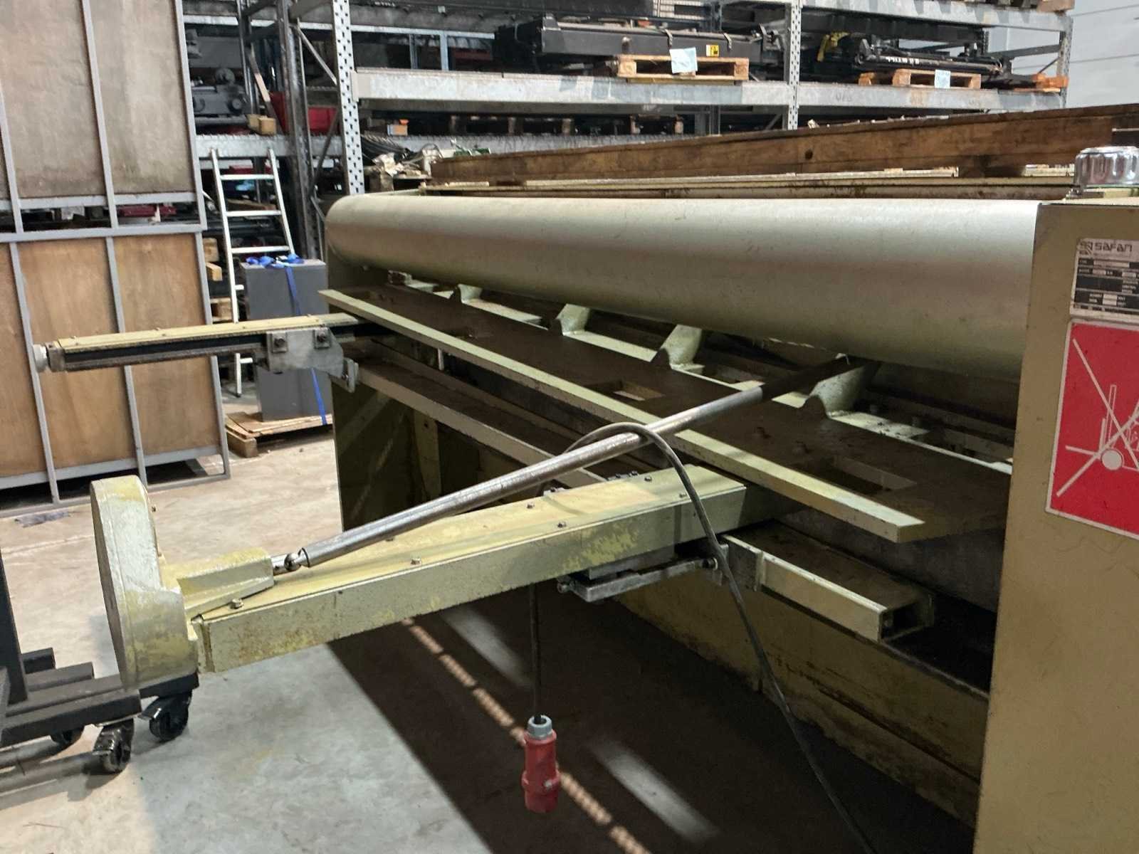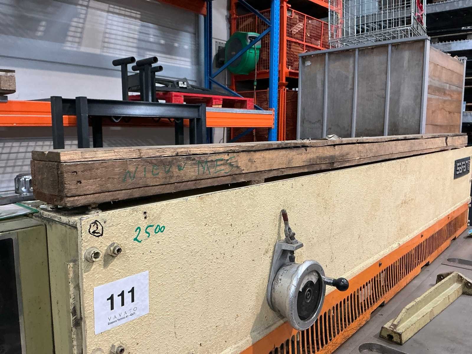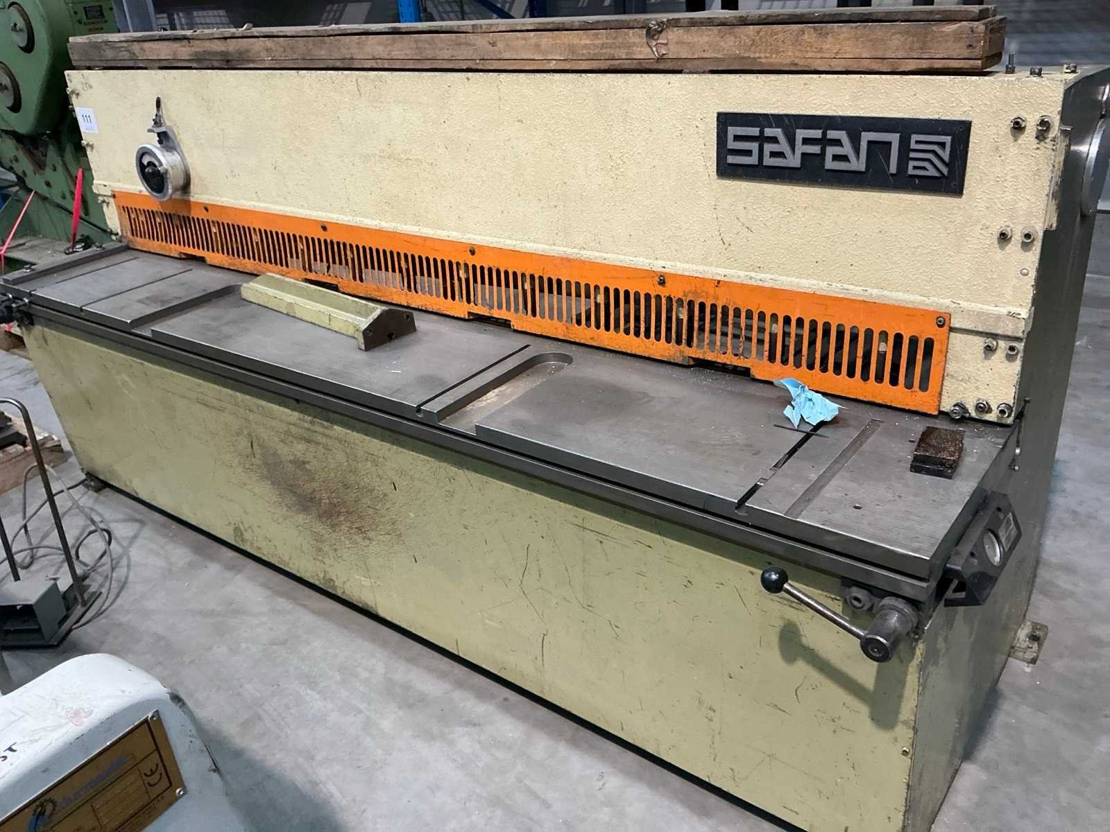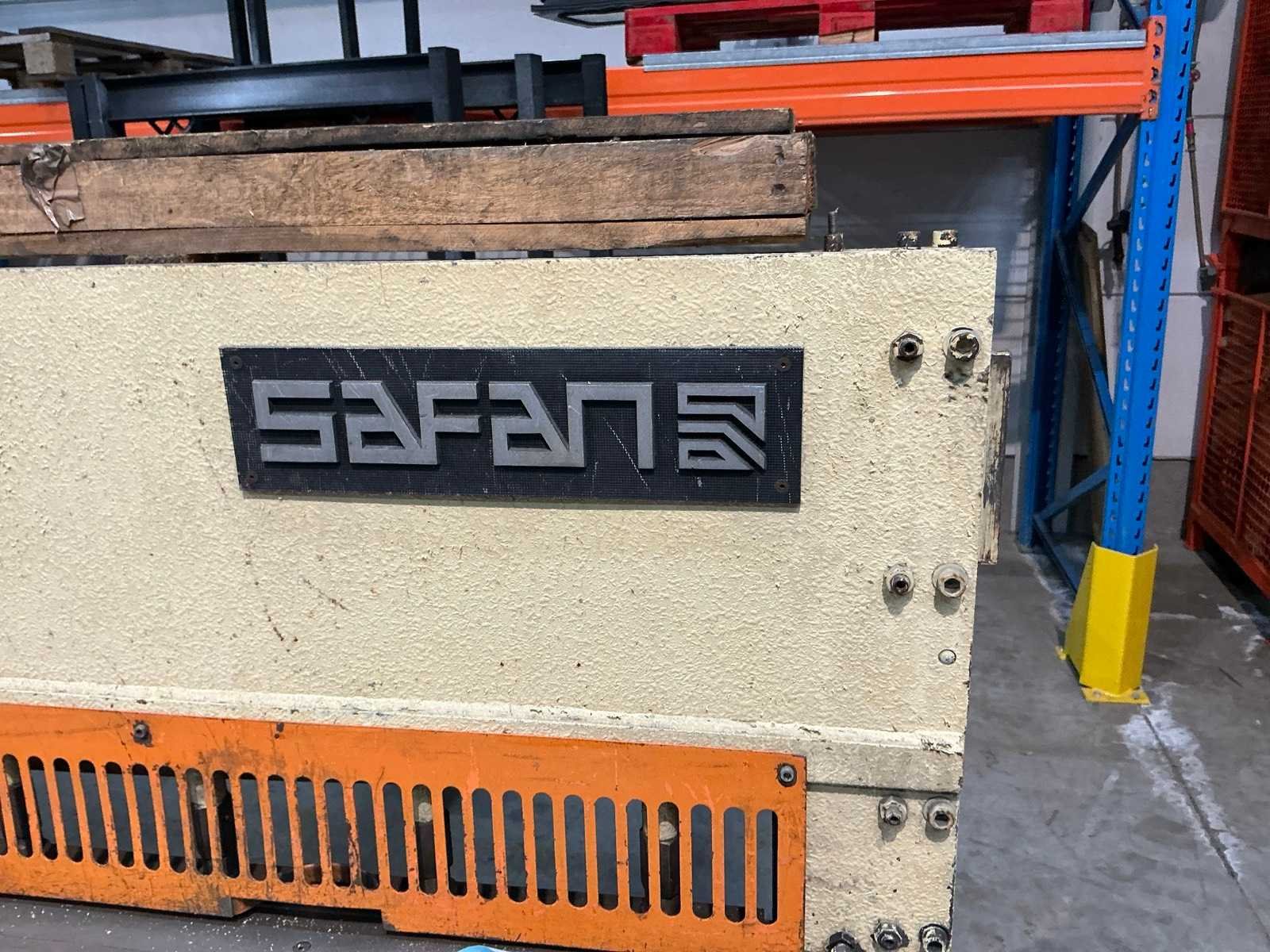 Voorzien van voetbediening, compleet met nieuw snijmes Nee Merk: Safan Type: VS255-4 Bouwjaar: 1980 Motorvermogen (kW): 5.5kW Aansluiting: 380V Afmeting l: 3100mm Afmeting b: 2100mm Afmeting h: 1380mm