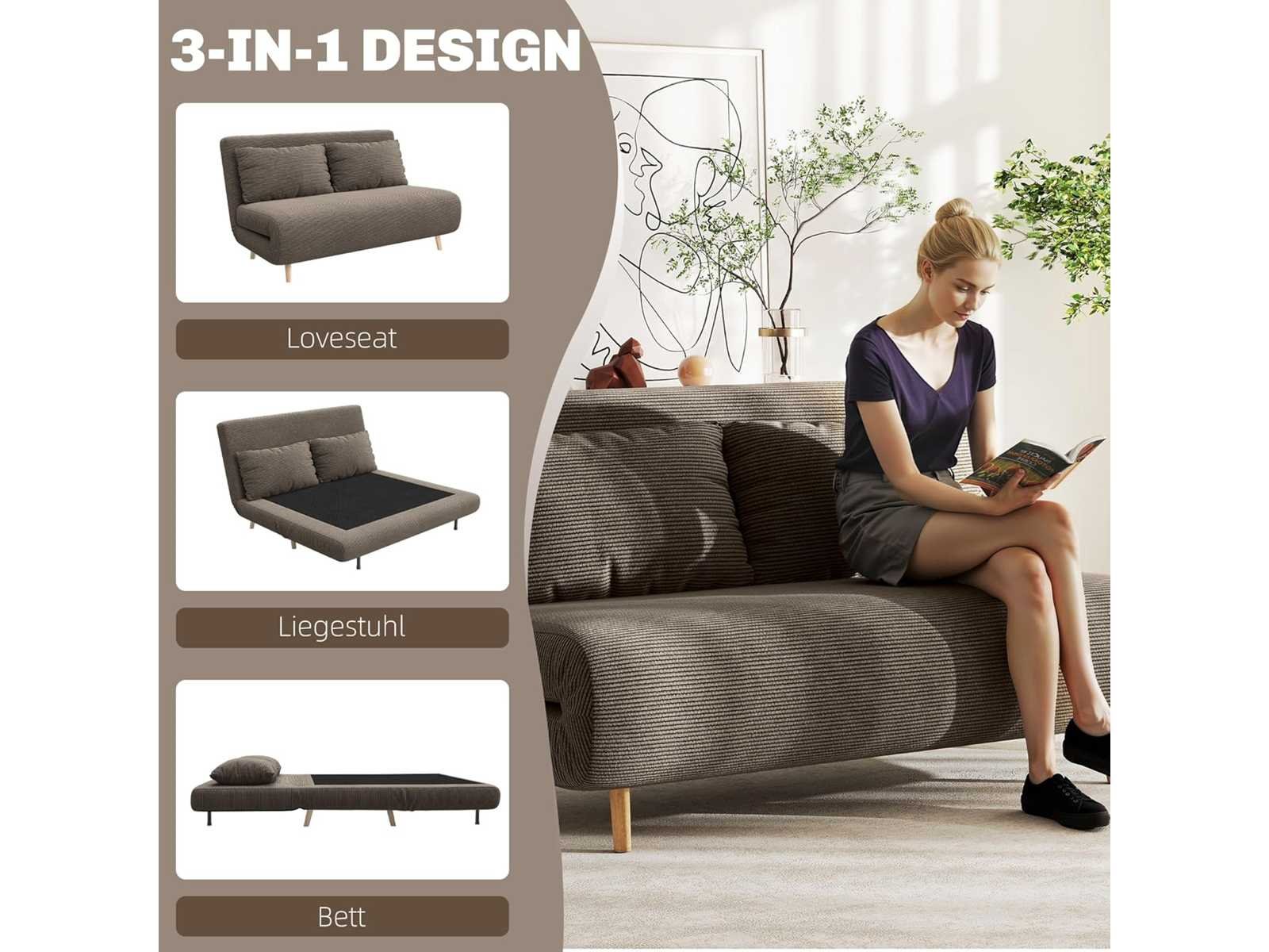 3-in-1 slaapbank, omschakelbare 2-zits bank