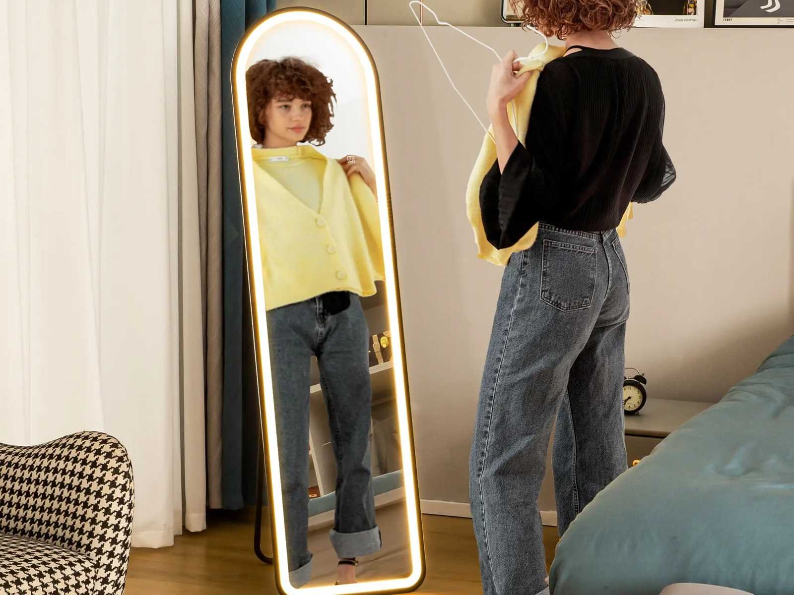 Spiegel van de volledige lengte, 150 x 40 cm, vrijstaande spiegel met dimbare led-verlichting