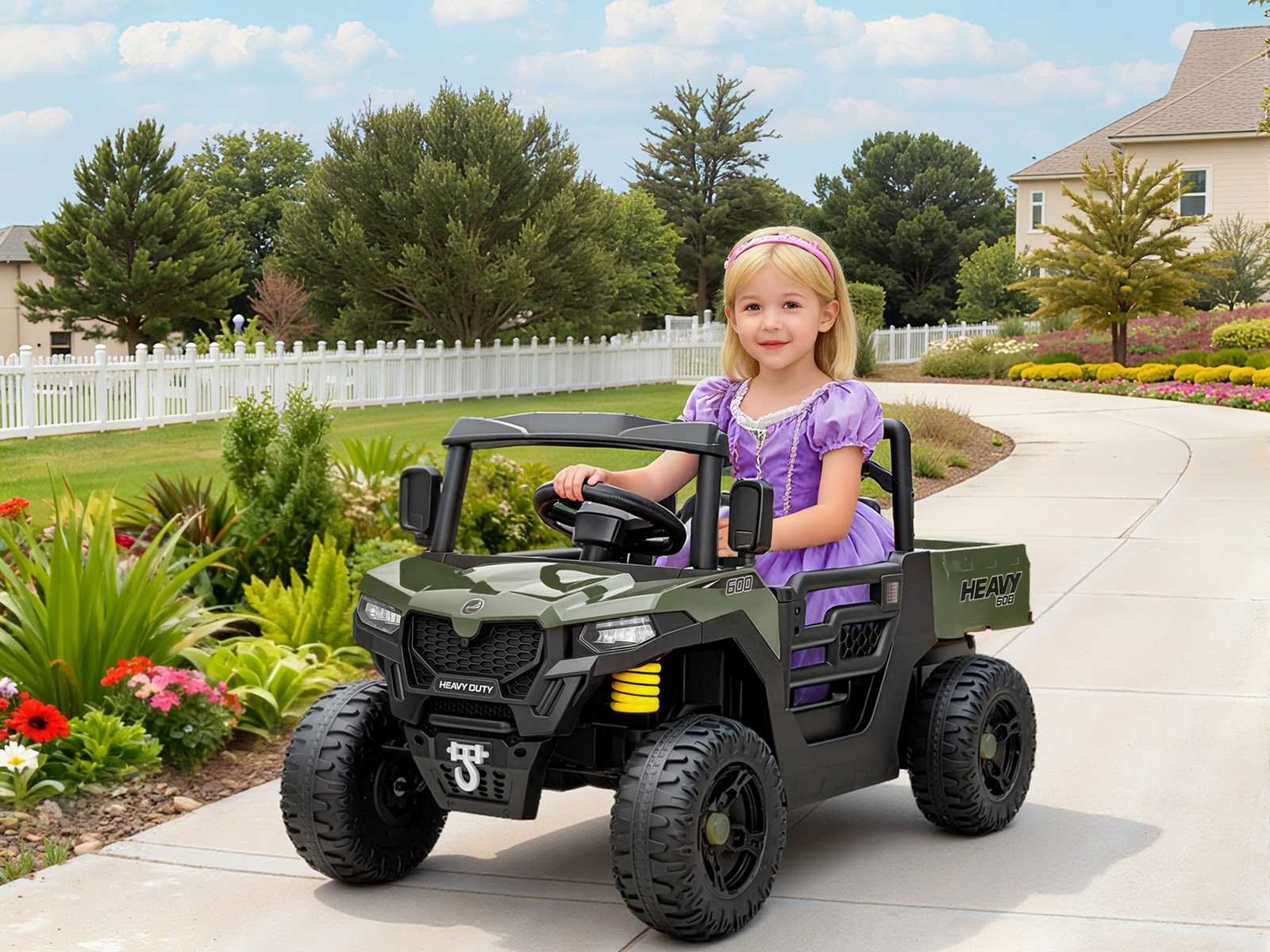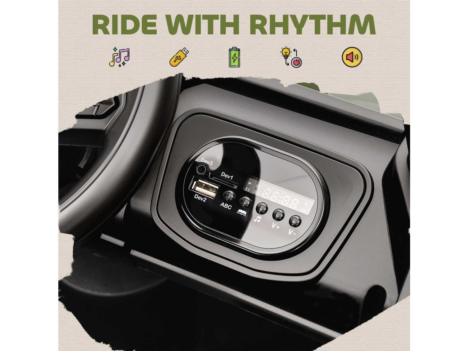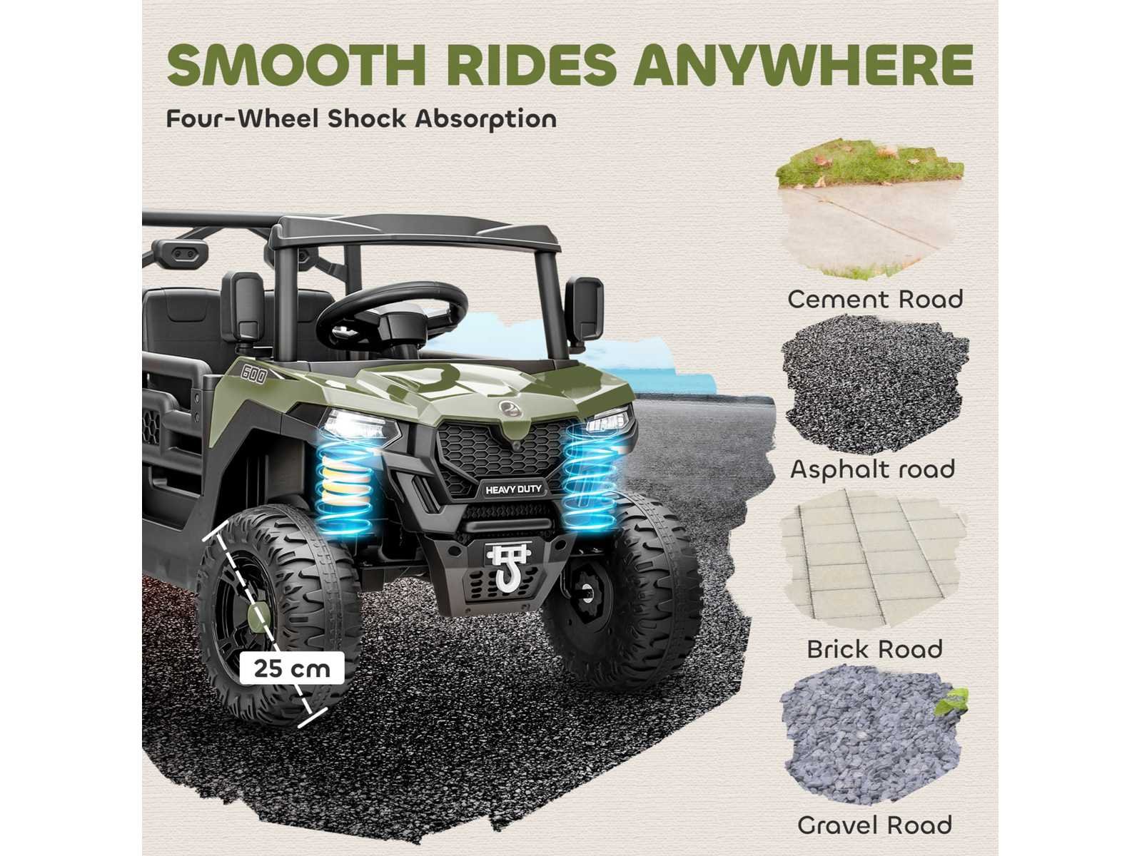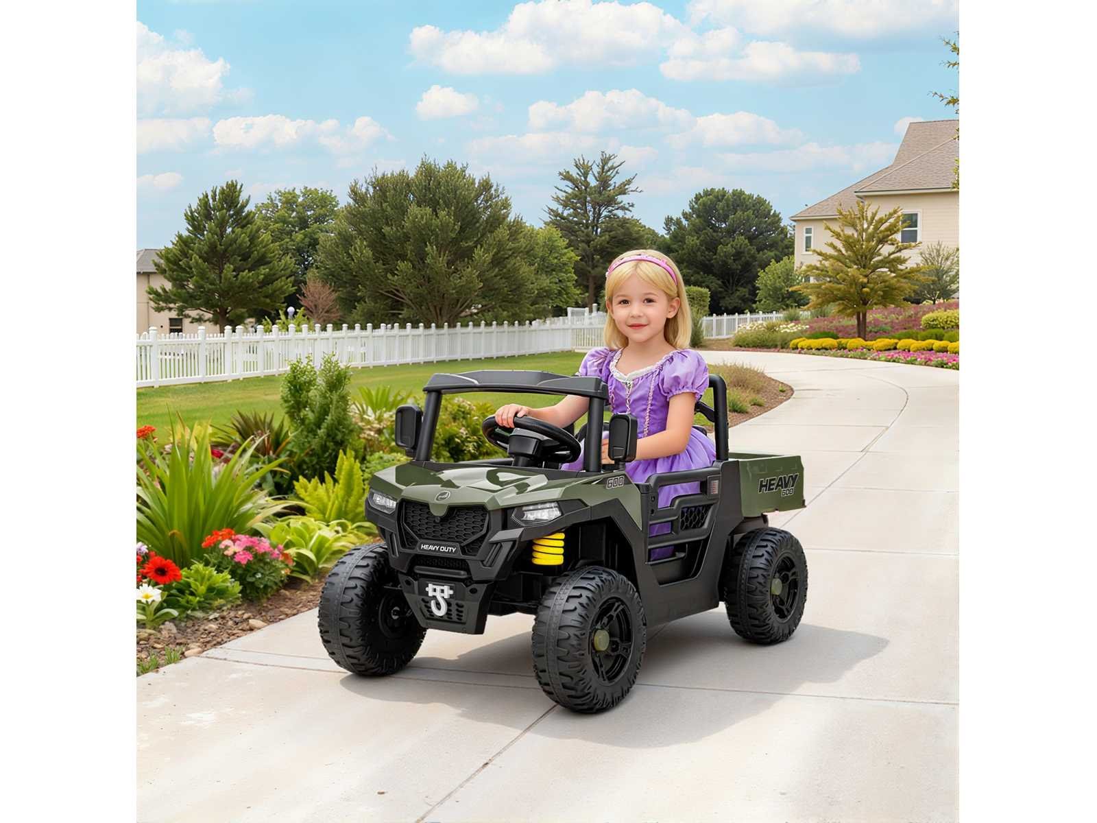 Specificaties: - Kleur: Groen - Materiaal: PP, metaal - Totale afmetingen: 105B x 60D x 60A cm - Zitafmetingen: 33D x 18D cm - Zithoogte: 16 cm - Wielafmetingen: Ø25 cm - Snelheid: 1,8 km/u - 3,7 km/u - Batterij: 12V 4,5AH - Eerste oplaadperiode: 4-6 uur - Reguliere oplaadtijd: 8-10 uur - Speelduur: 45 min - Draagvermogen: 30 kg - Zitcapaciteit: 1 passagier - Geschikte leeftijd: 3-8 jaar Non