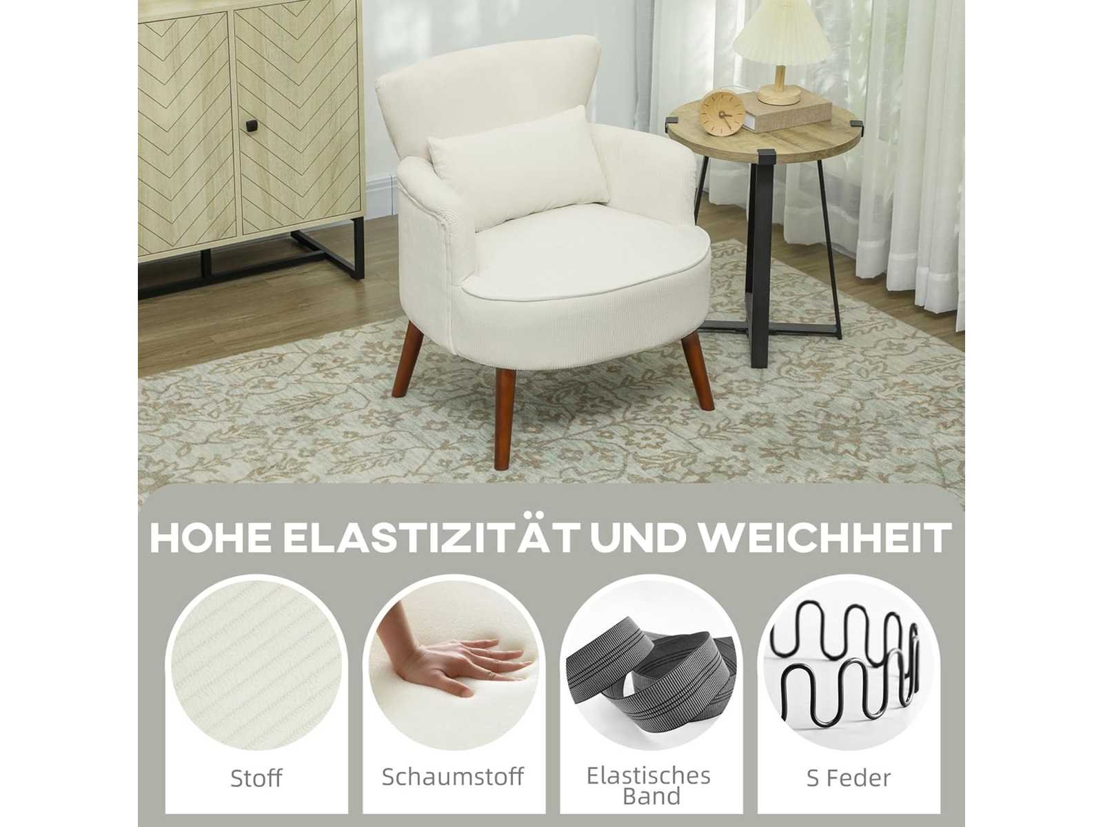 Zacht en zacht: Geniet van optimaal comfort met deze comfortabele stoel, uitgerust met een schuimkussen met hoge dichtheid, S-veren en een elastisch bandje, bekleed met een fijne stof en inclusief een wasbaar lendenkussen. Elegante stijl: Deze elegante en comfortabele fauteuil voor de woonkamer heeft gebogen armleuningen en een vleugelrug, gemonteerd op houten poten die elke kamer een vleugje elegantie geven. Langdurig gebruik: Deze ligstoel, met zijn stevige eucalyptushouten frame en duurzame rubberhouten poten met verstelbare plastic uiteinden, biedt stabiliteit en beschermt de vloer. Veelzijdig gebruik: Of het nu als decoratief element in de woonkamer is of als stijlvolle toevoeging aan je kantoor, deze compacte gestoffeerde stoel past perfect in verschillende interieurstijlen. Fauteuilafmetingen: 69 cm (L) x 69,5 cm (B) x 78 cm (H). Maximale belasting: 120 kg. Geleverd uit elkaar gehaald, eenvoudige montage. Non
