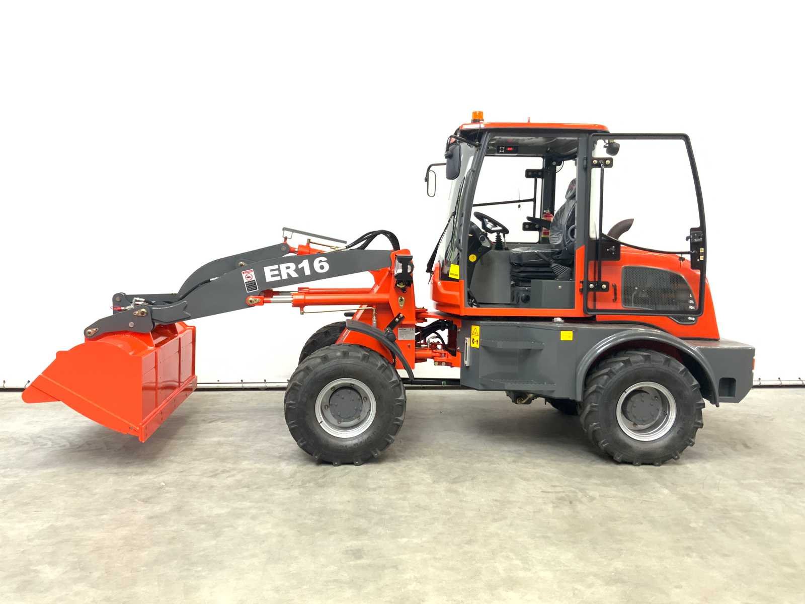 Hydraulische snelwissel; rated load 1600kg; maximale hefhoogte 2980mm; Motervermogen 50PK; Transmissie 2 versnellingen Torque Converter Max. rijsnelheid: 22 km/h; 4WD; Luxe volledig gesloten cabine; V.v. 1 deur; te openen raam; geveerde stoel; radio; ventilator en verwarming; Kantelbare cabine ivm vereenvoudigd onderhoud; graafbak van 0.80 m3 en palletvorken; totale afmeting met graafbak; 6152 Nee Merk: Everun Type: ER16 Bouwjaar: 2025 Merk motor: XINCHAI A498 BT1 Motorvermogen (kW): 36.80kW Aantal cilinders: 4 Brandstof: Diesel Graafbak afm. b: 2000mm Bandenmaat: 23.5/70-16 Cabine: true Afgelezen urenstand: 1 Eigen gewicht: 3800kg Totale afmeting L: 5240mm Totale afmeting Breedte: 1900mm Totale afmeting Hoogte: 2600mm