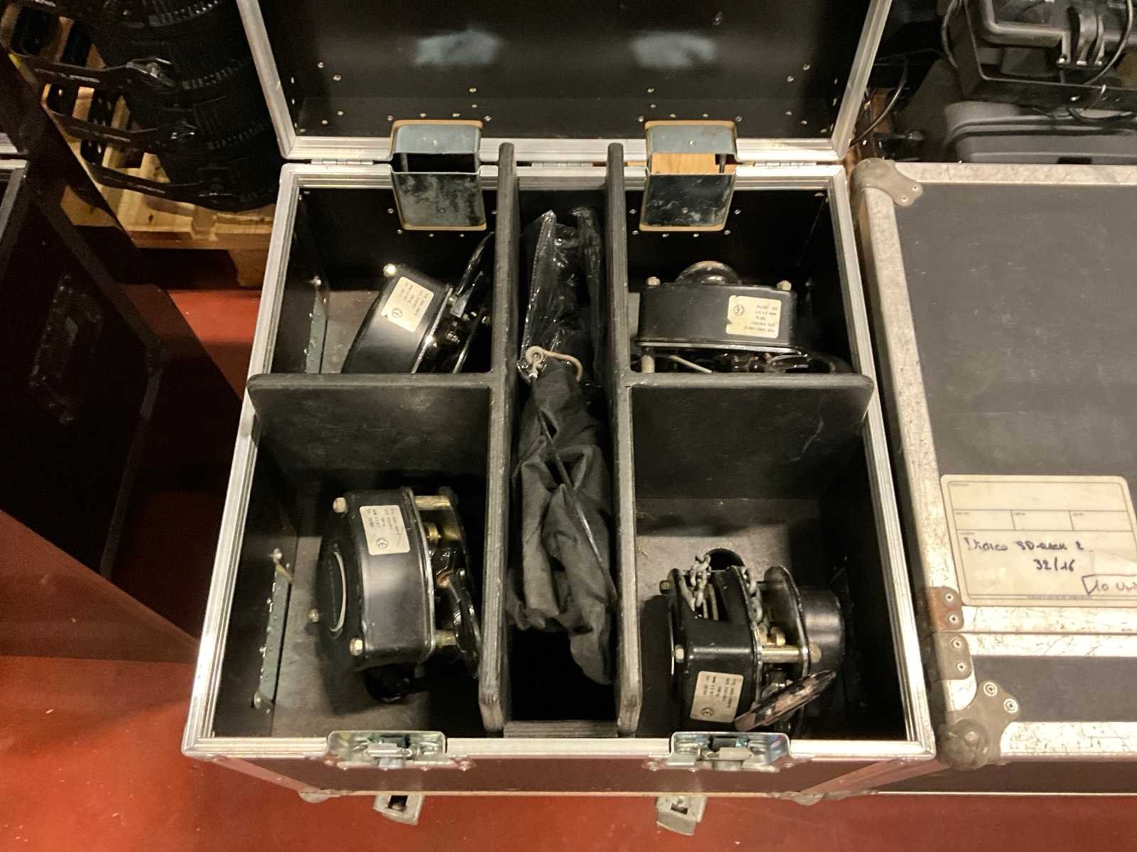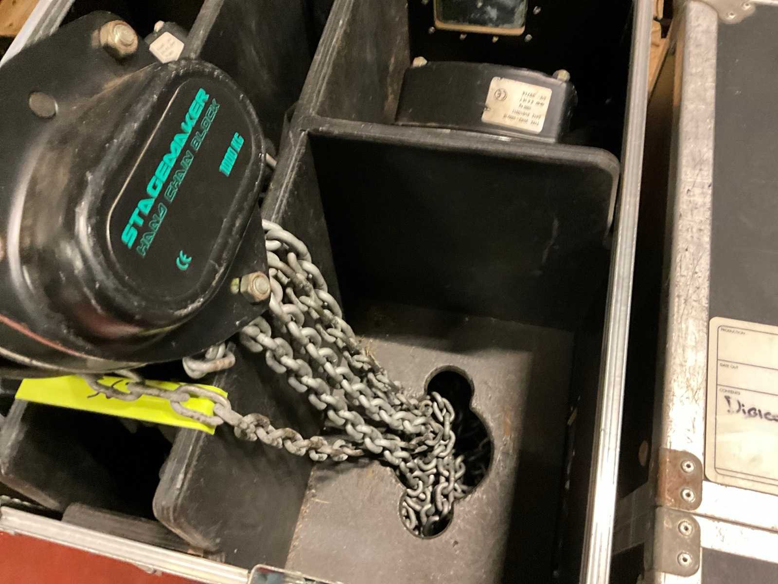 4x stagemaker handtakel 1ton + kettingzakken in custom flightcase Nee