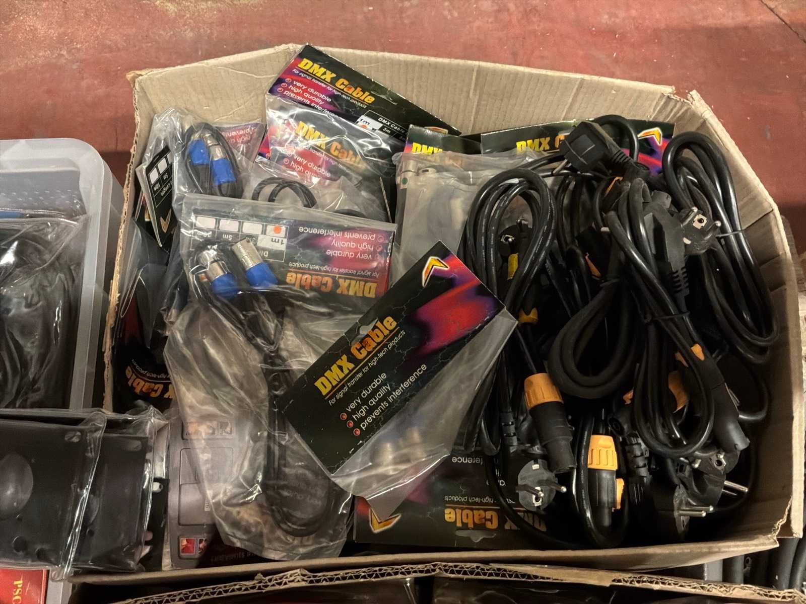 Lot diverse bekabeling. Nieuw in verpakking: speakon, truecon start,audio xlr,dmx xlr, adapter kabels, patchpanelen. Gebruikt: Harting 16P splitters,16P Harting break-in spinnen Nee