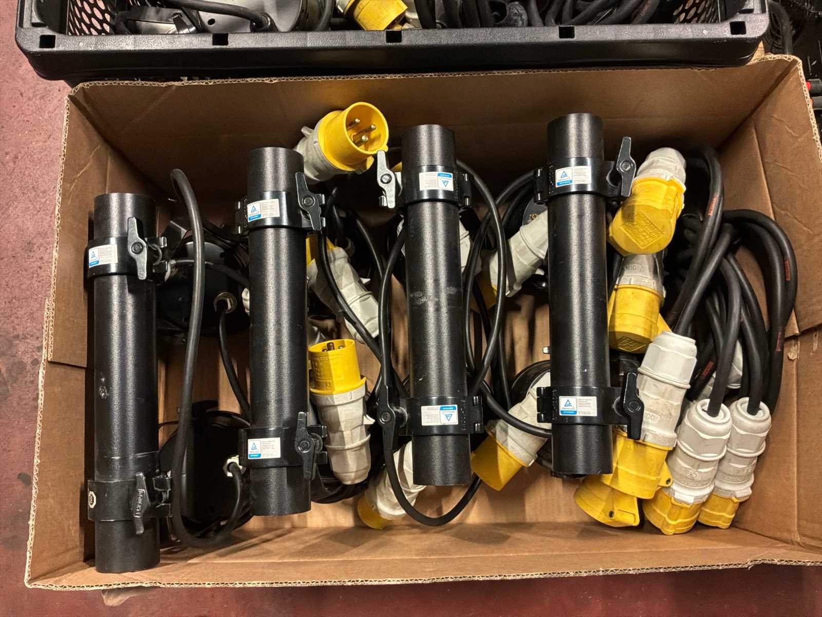 8x DWE blinder 650w per 2 met klem op buis + 4x Y split kabel shucko -> 110V Nee
