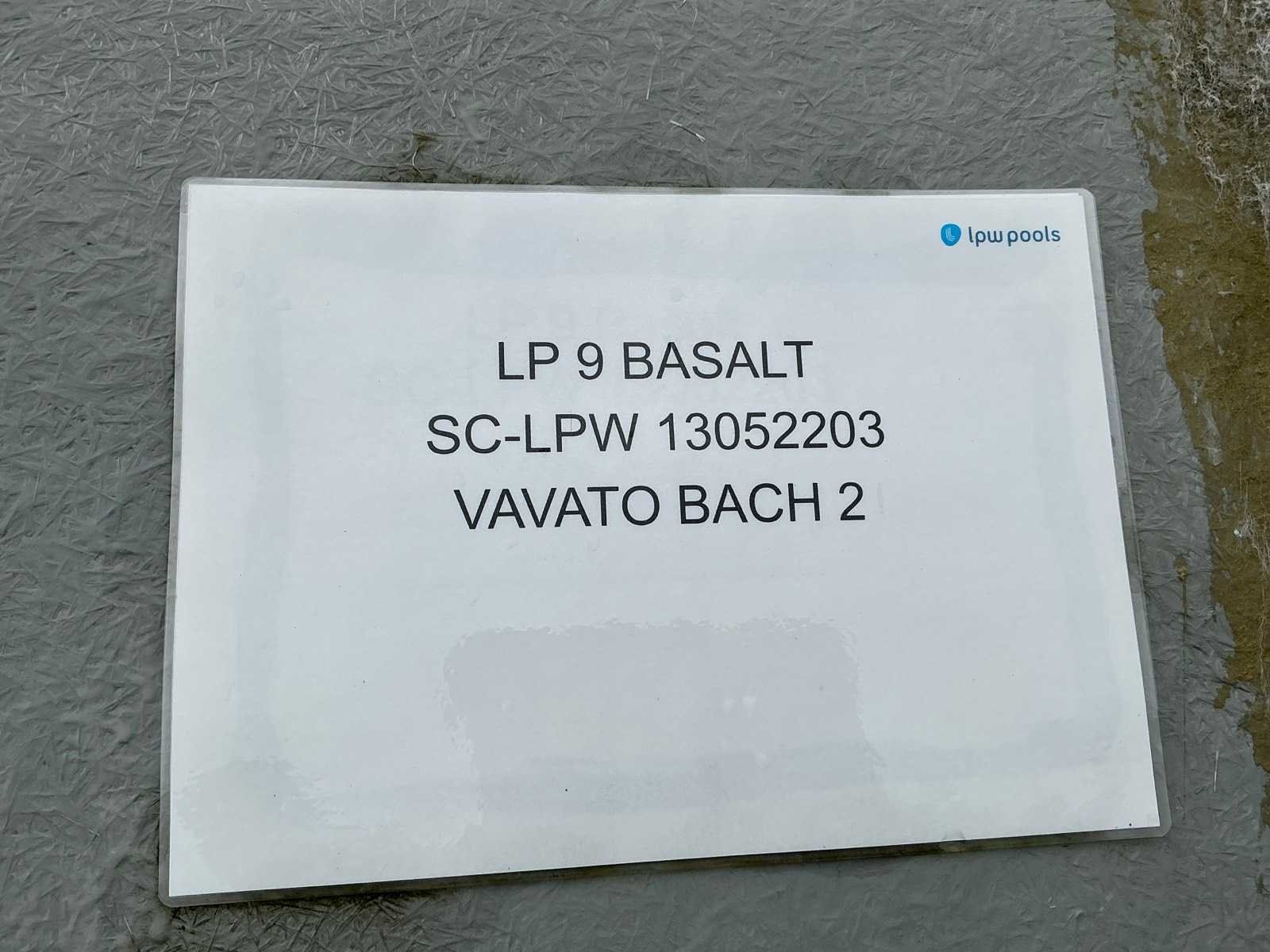 Imperfectie: kleurvlekken, 1e foto ter referentie (gelijkaardig zwembad) Nee Kleur: Donkergrijs Lengte: 900cm Breedte: 400cm Hoogte: 150cm Materiaal: Vinylester Epoxy