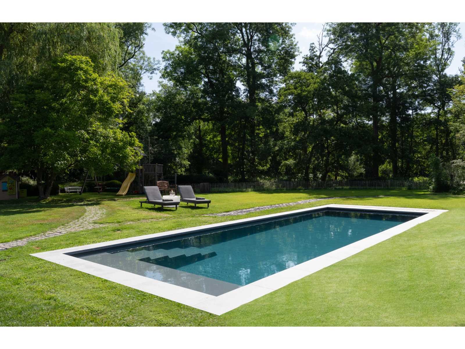 Imperfectie: kleurvlekken, 1e foto ter referentie (gelijkaardig zwembad) Nee Kleur: Donkergrijs Lengte: 1200cm Hoogte: 150cm Materiaal: Vinylester Epoxy