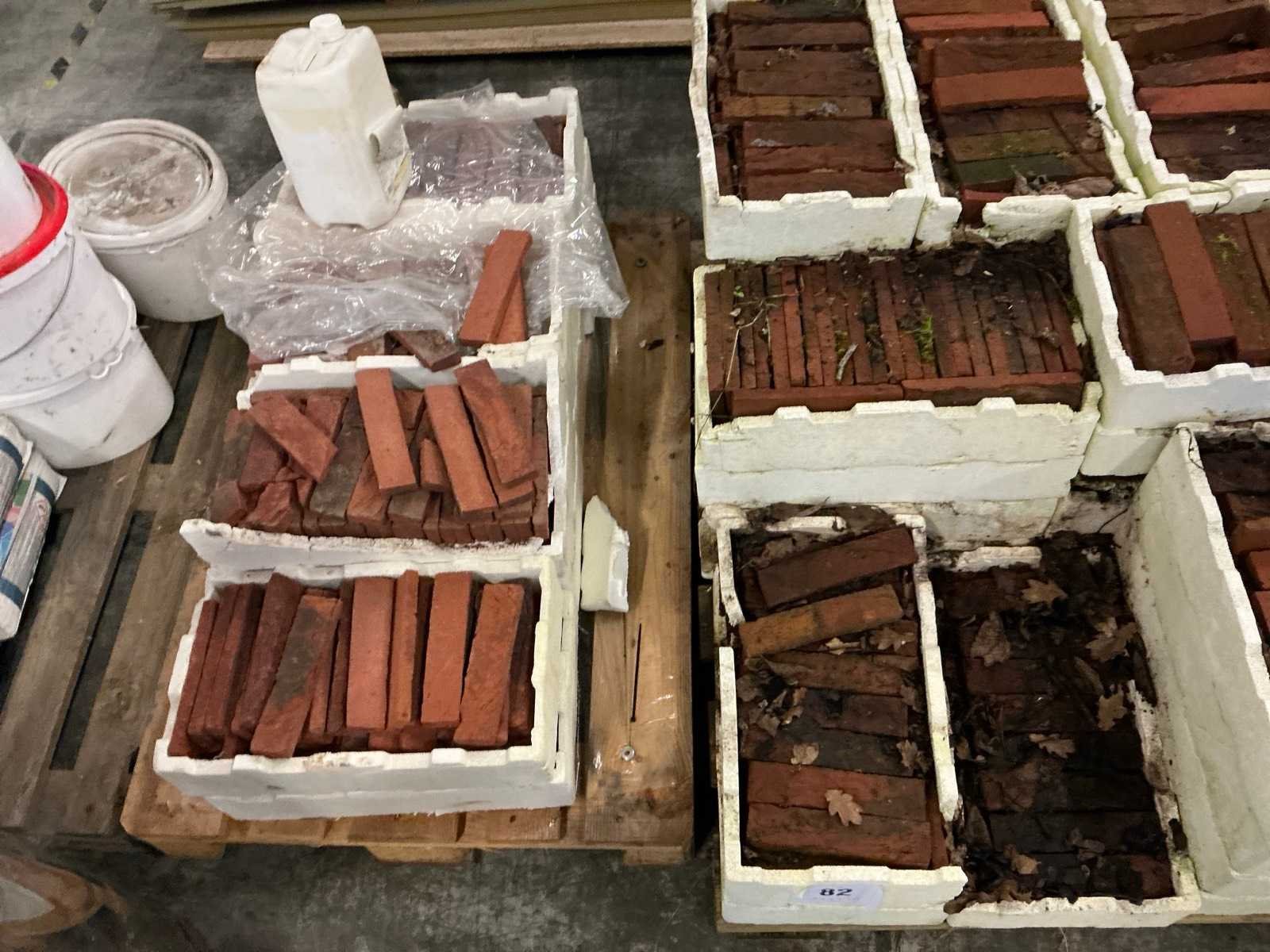 Waaronder partij gevelstenen met afmeting 21 x 5 x 2 cm , zandcementmortel, lijmmortel, isolatiekabels, enzovoort liggende op 4 paletten Nee