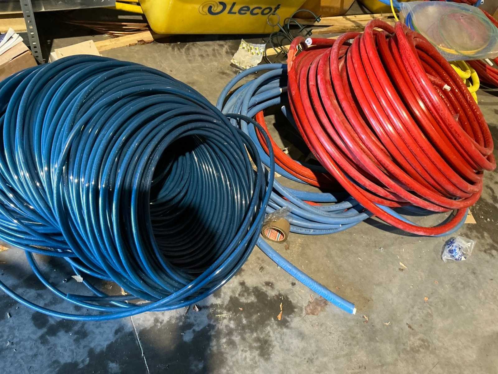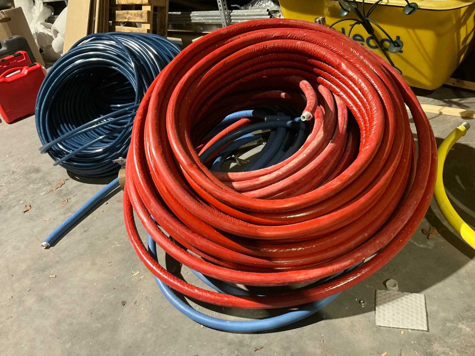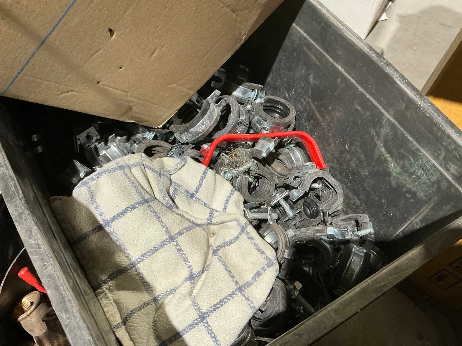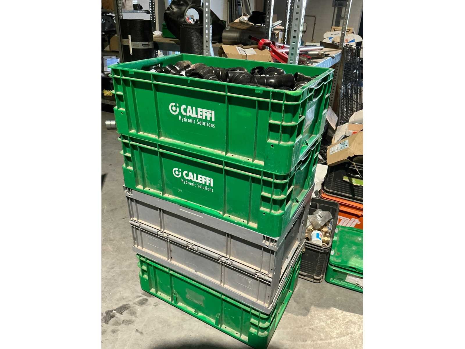 Waaronder bestaande uit: grote partij diverse flexibele buizen waaronder airco buis, rookafvoerbuizen en waterbuizen, Diverse pvc koppel- en aansluitstukken, 7 dozen Indac Ipo tube waaronder 3/8”x0.8mm - 50m in originele verpakking, Partij divers bevestigingsmateriaal waaronder pluggen, schroeven en ankers liggende in drie diverse kunststof opbergbakken, 7 rollen roofing Defranck waaronder 2 reeds aangesproken compleet met twee rollenfolie WIESSMANN, 1 kunststof nokpan Lengte ca 200cm, 7 OSB platen Tand en groef, Partij diverse isolatie waaronder 10 isolatiebanden VIESSMAN N 150 millimeter/8 mm, 10 dozen inhoudende 10 isolatieexpansie profielen VIESSMANN en 8 isolatiepanelen IKO Enertherm compleet met enige kunststof vloerverwarmingsplaten, 3 metalen magazijnrekken Ca 150 x 50 x 189cm, Demonteerbaar, Inhoudende partij diverse aannemers-/installateurbenodigdheden waaronder kranen en onderdelen, kunststof aansluitstukken, bevestigingsmaterialen waaronder schroeven, Goothaken, klemmen en dakafwerkingsstroken, Compleet met enige diverse reeds aangesproken potten daklijm en 1 houten bijzettafel, Uitgezonderd genummerde kavels en eigendomsvoorbehoud, Afgifte volgens aanwijzing Nee