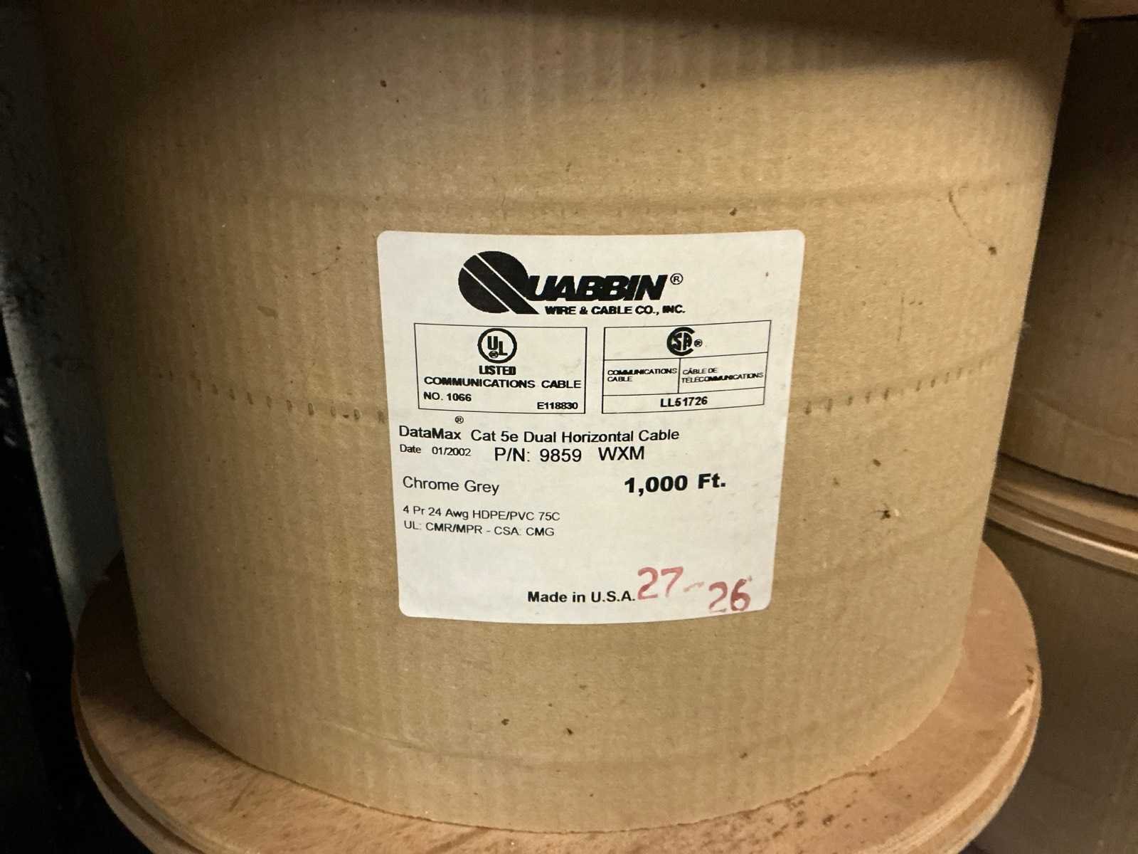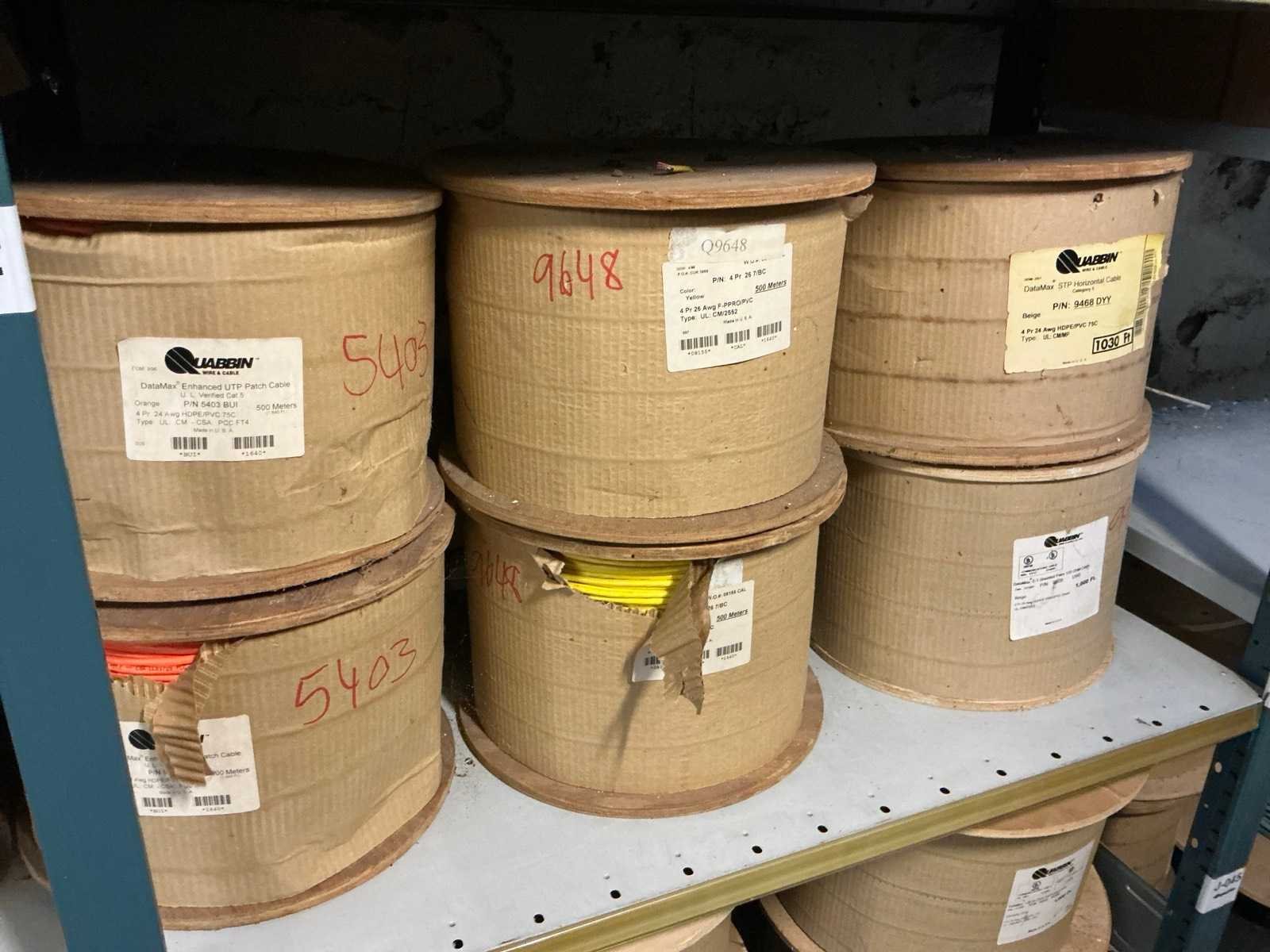 Waaronder voornamelijk UTP kabel Cat 5e en Atox kabel, in diverse uitvoeringen waaronder lengtes: 1000ft, 1030ft en 500 meter, waaronder aangesproken en volle bobijnen Nee Merk: QUABBIN