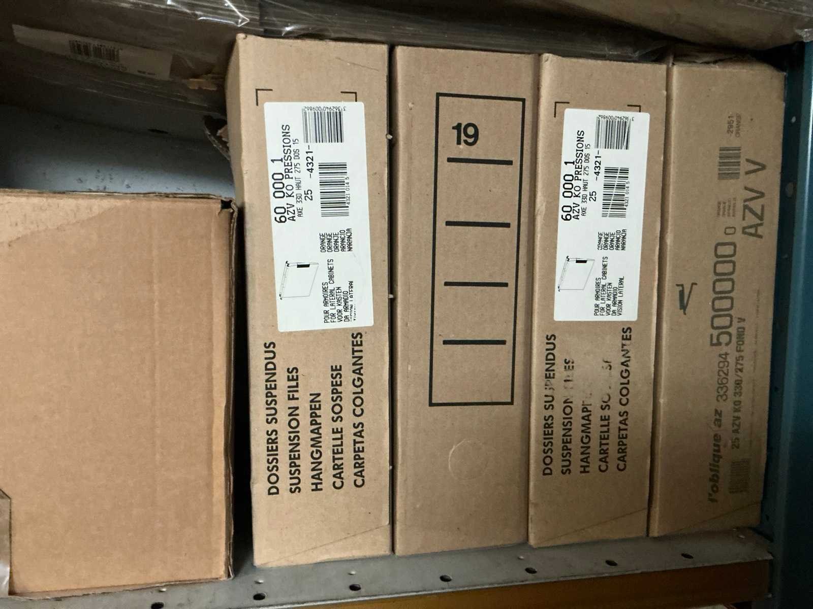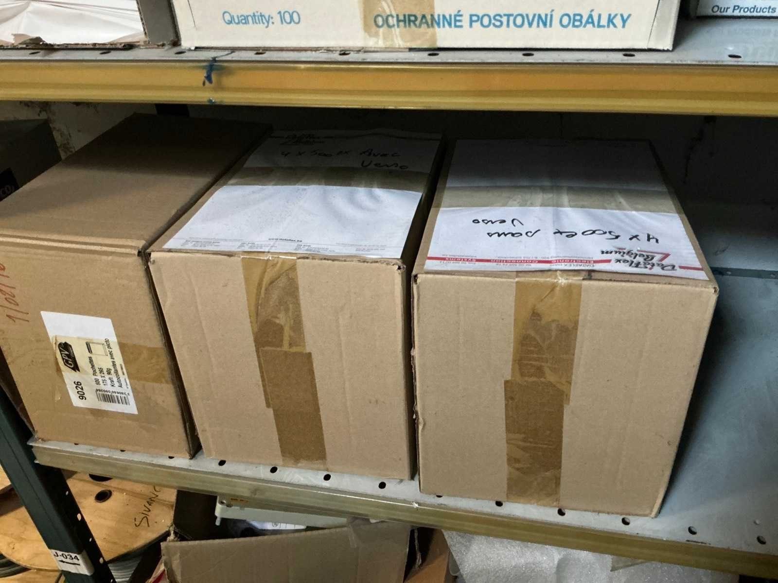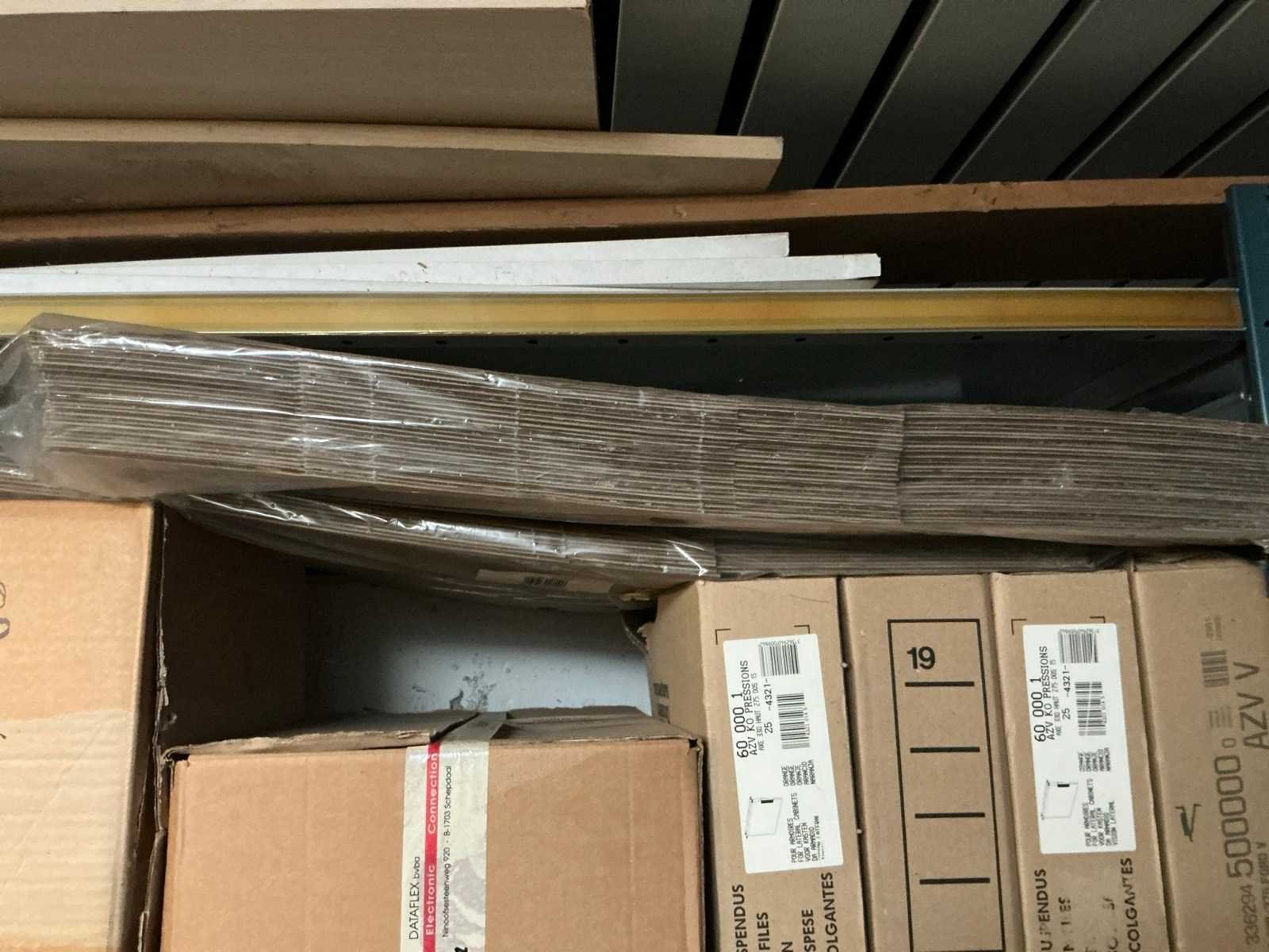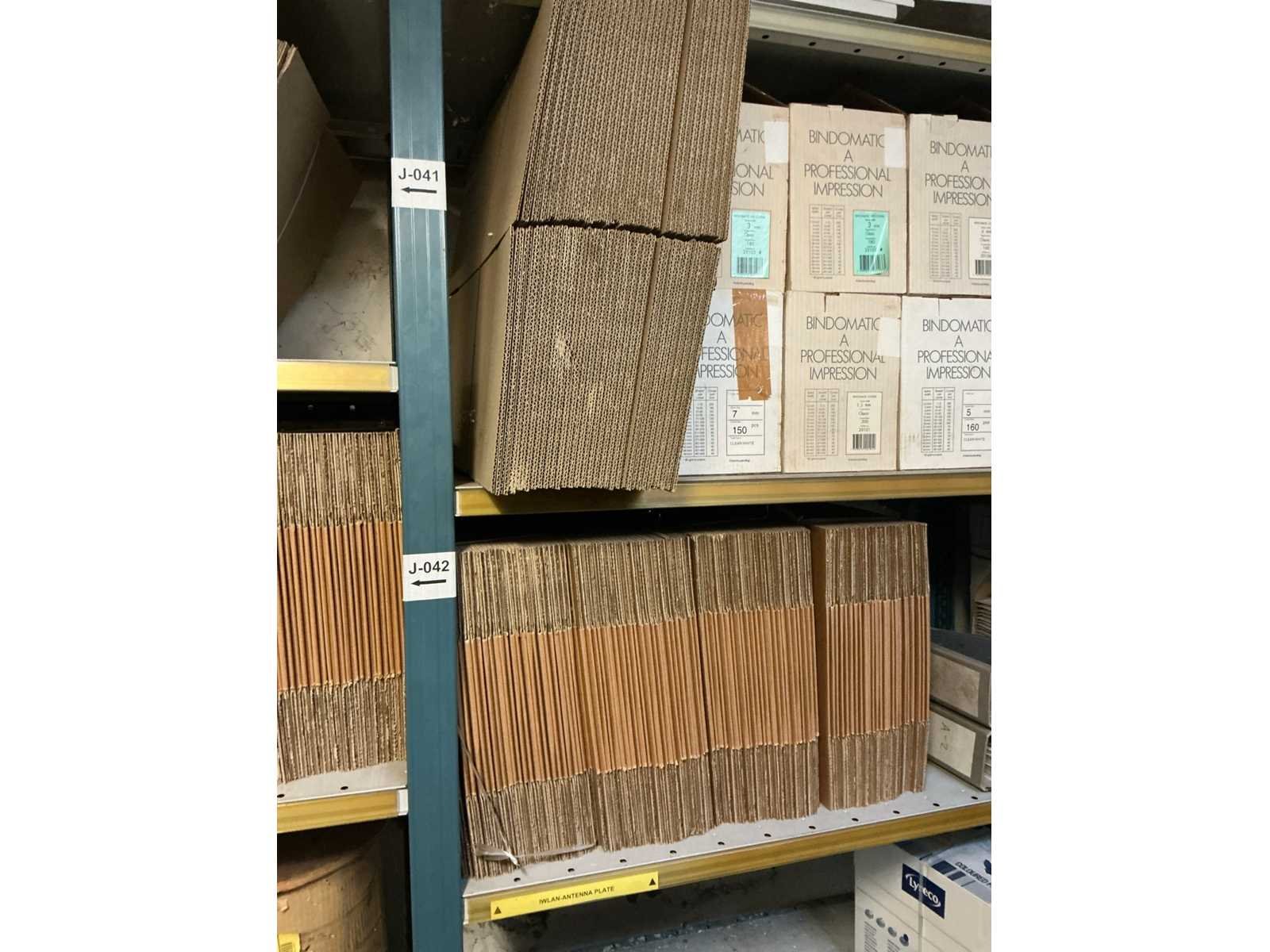 Waaronder kartonnen dozen Rajabox , enveloppen Sealed Air Ref A/000 en D/1 en enige hangmappen, compleet met doos inhoudende U-vormige bundeltoebehoren en diverse hangmappen, afgifte volgens aanwijzing Nee