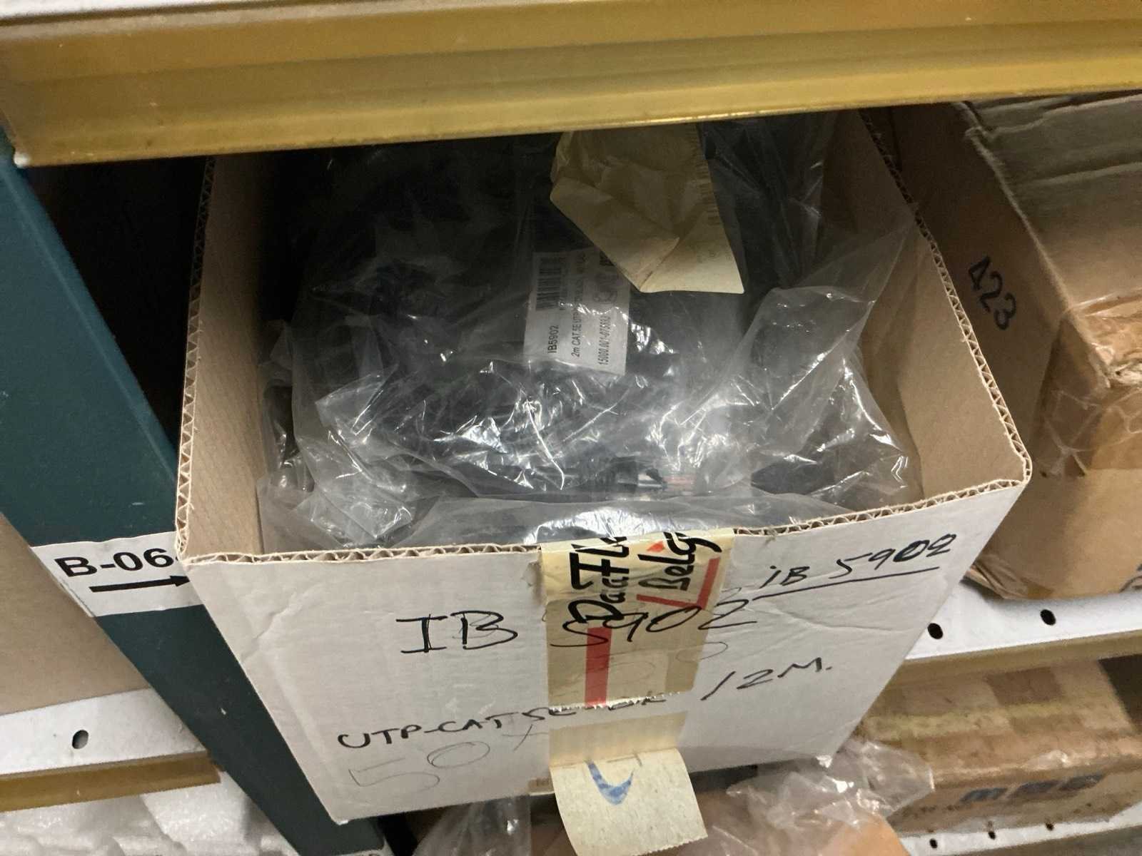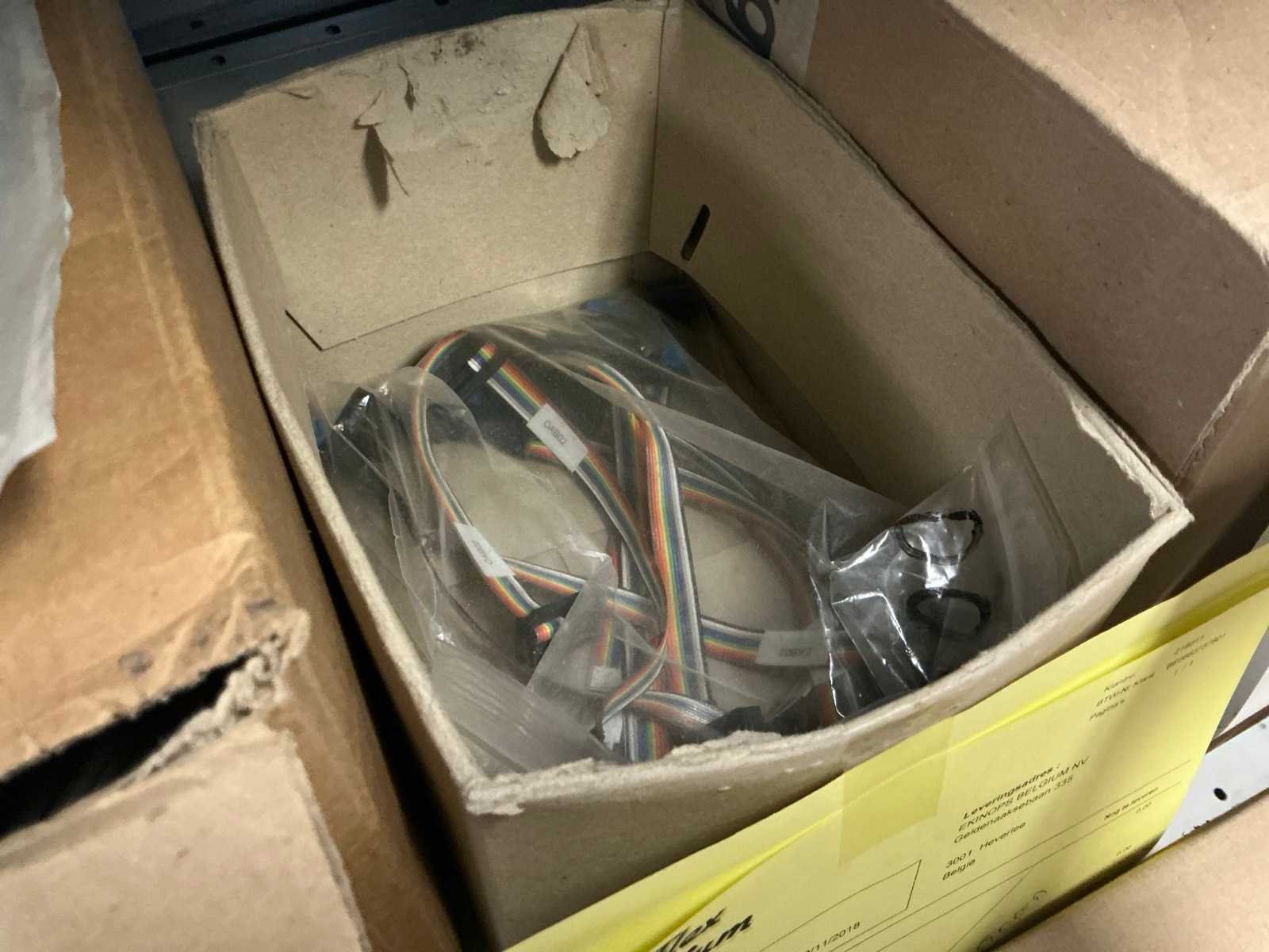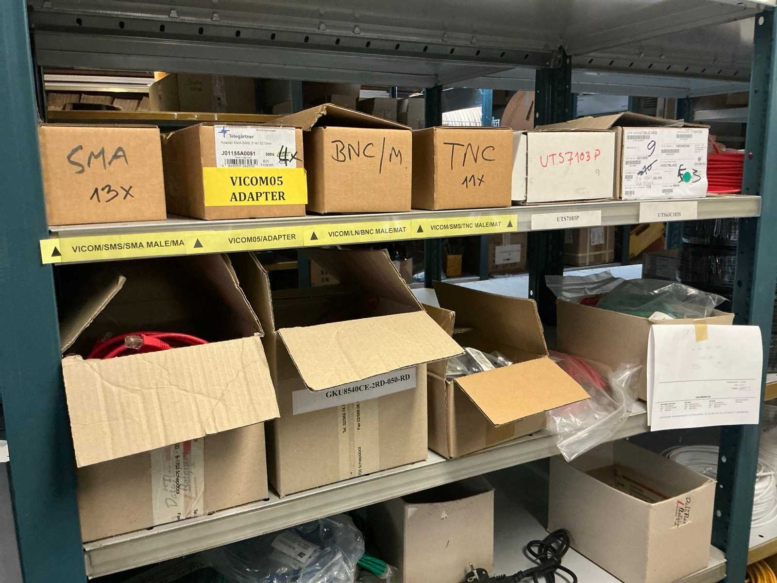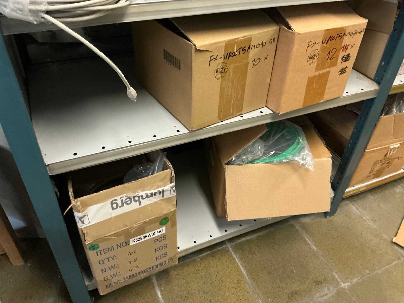 Waarondern diverse datakabels, aluminium behuizingsonderdelen, enige bevestigingsmaterialen, computeronderdelen, Patch kabels, telefoonkabels,, … liggende in 2x dubbelzijdig rek, zonder rek Nee