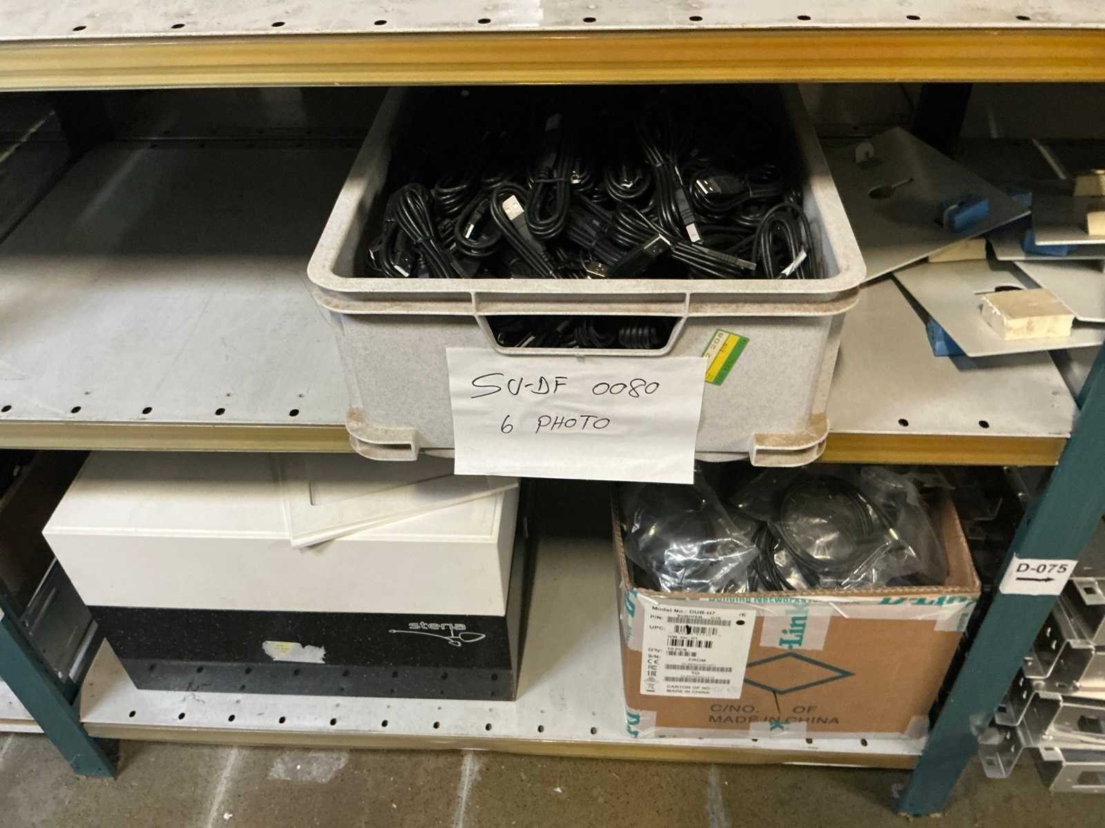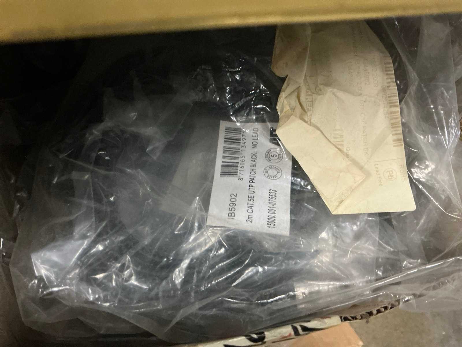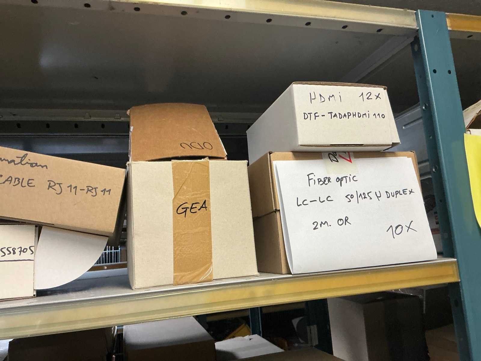 Waarondern diverse datakabels, aluminium behuizingsonderdelen, enige bevestigingsmaterialen, computeronderdelen, Patch kabels, telefoonkabels,, … liggende in 2x dubbelzijdig rek, zonder rek Nee