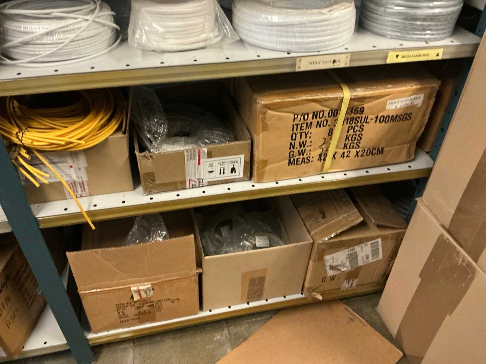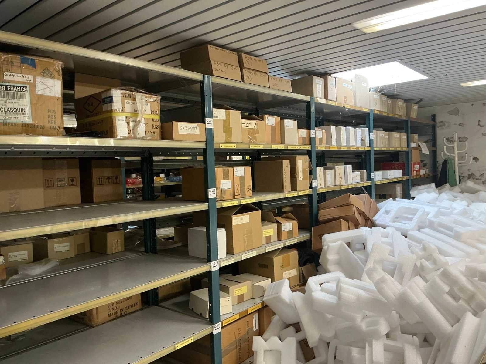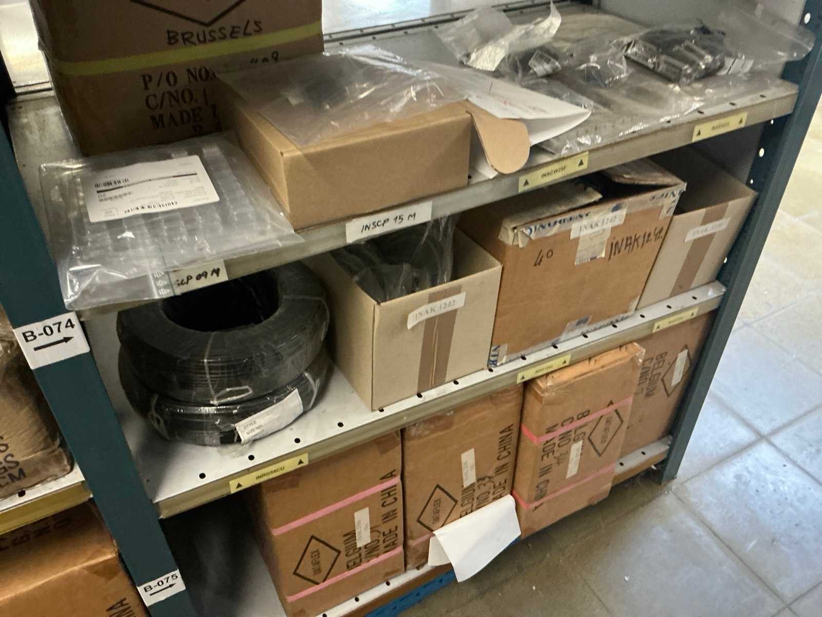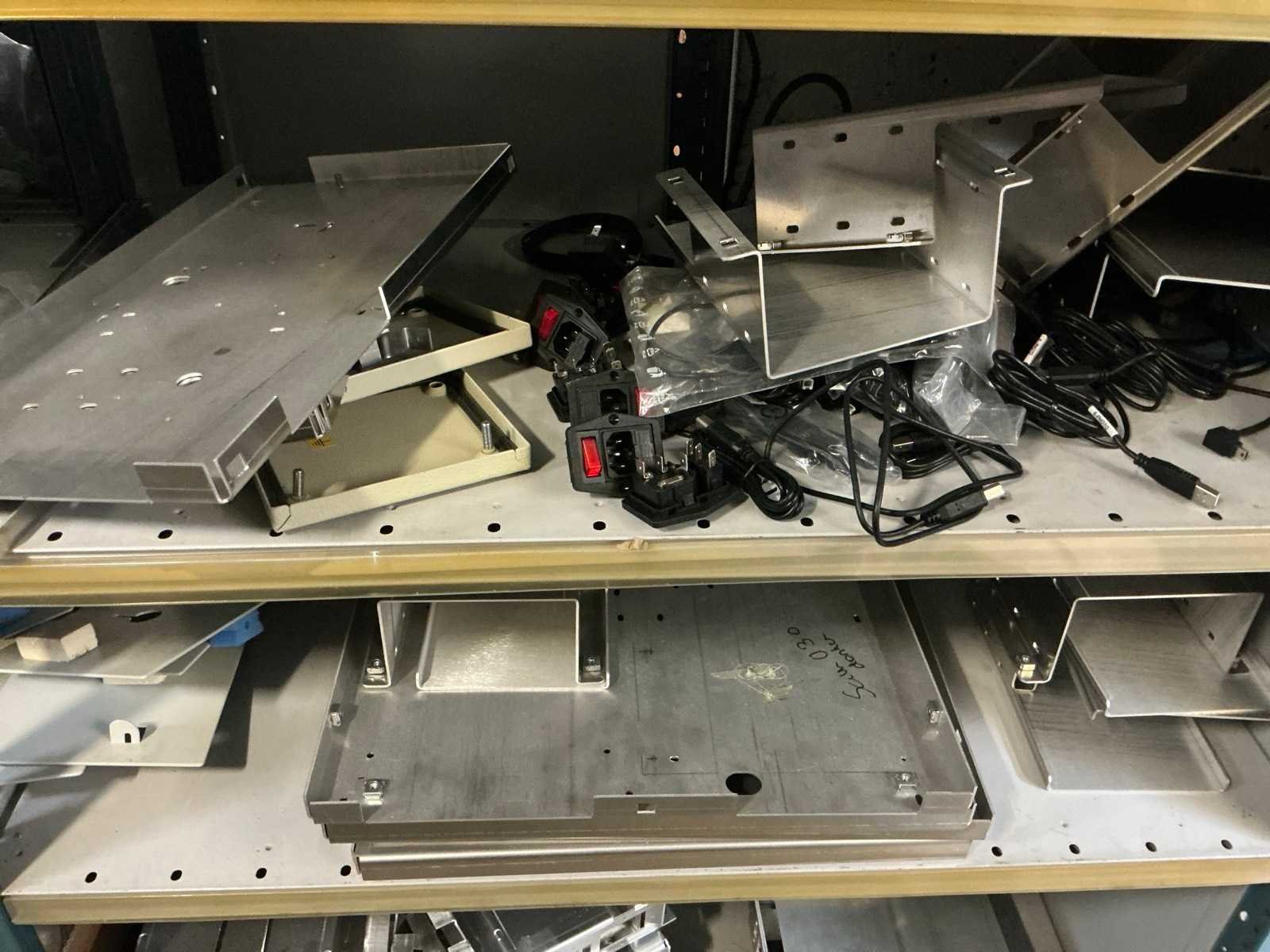 Waarondern diverse datakabels, aluminium behuizingsonderdelen, enige bevestigingsmaterialen, computeronderdelen, Patch kabels, telefoonkabels,, … liggende in 2x dubbelzijdig rek, zonder rek Nee
