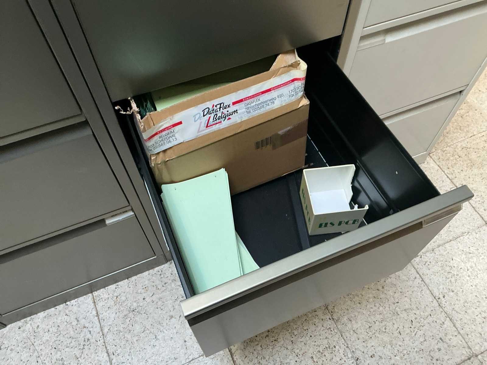 Voorzien van 4 lades waarvan 1 kast met hangmapstructuur, compleet met pvc mappenhouders voorzien van 55 vakken, zonder inhoud (boekhouding) Nee Merk: Bisley Lengte: 45cm Hoogte: 134cm Diepte: 62cm Aantal laden: 4