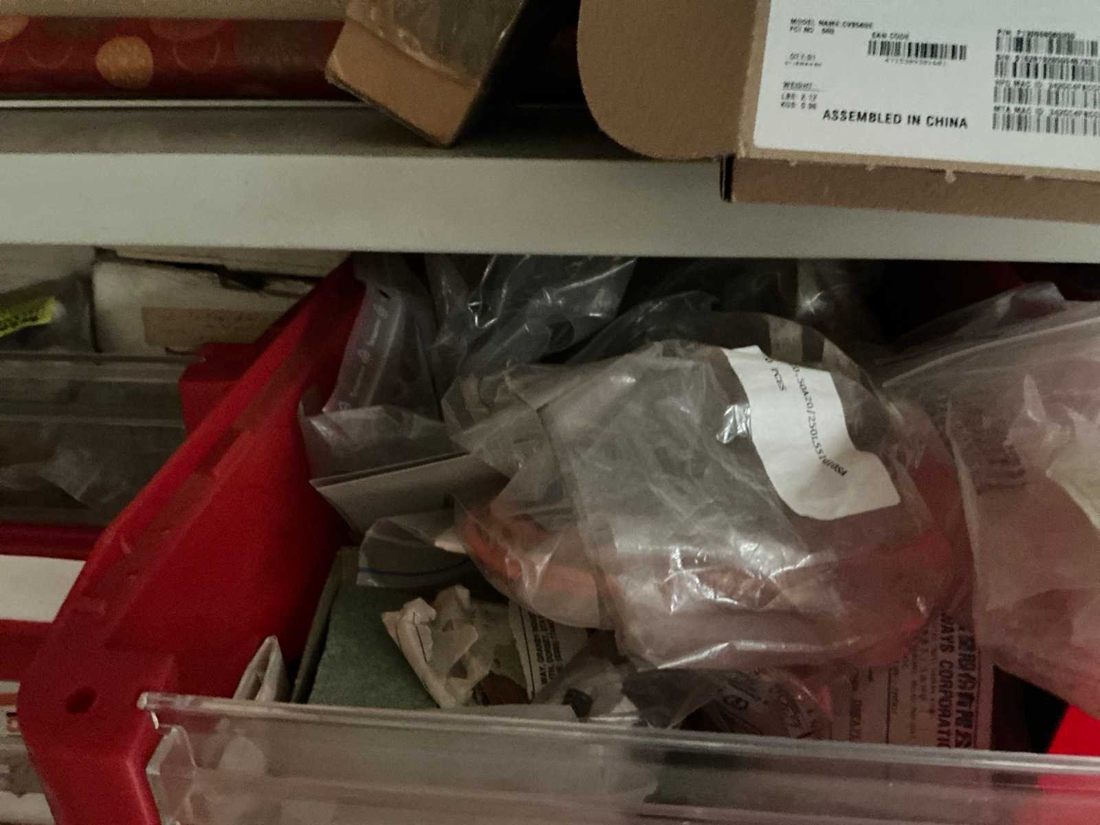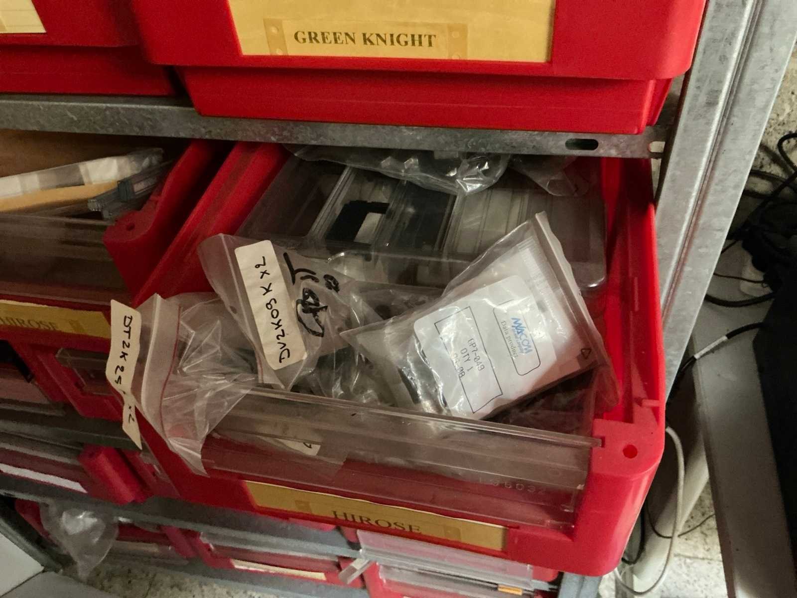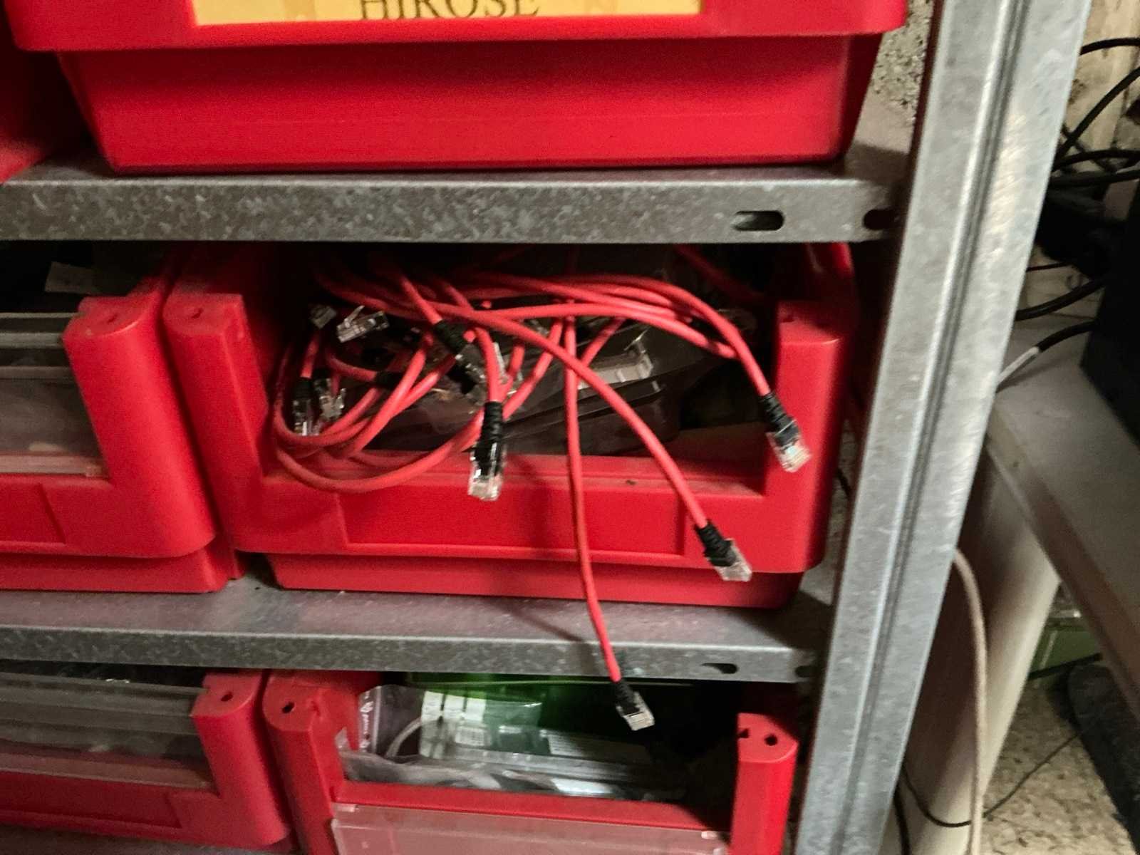 Voorzien van 21 pvc opbergdoosjes inhoudende partij diverse datakabels, plaatjes en connectoren Nee Merk: Bito Lengte: 106cm Breedte: 50 Hoogte: 183cm