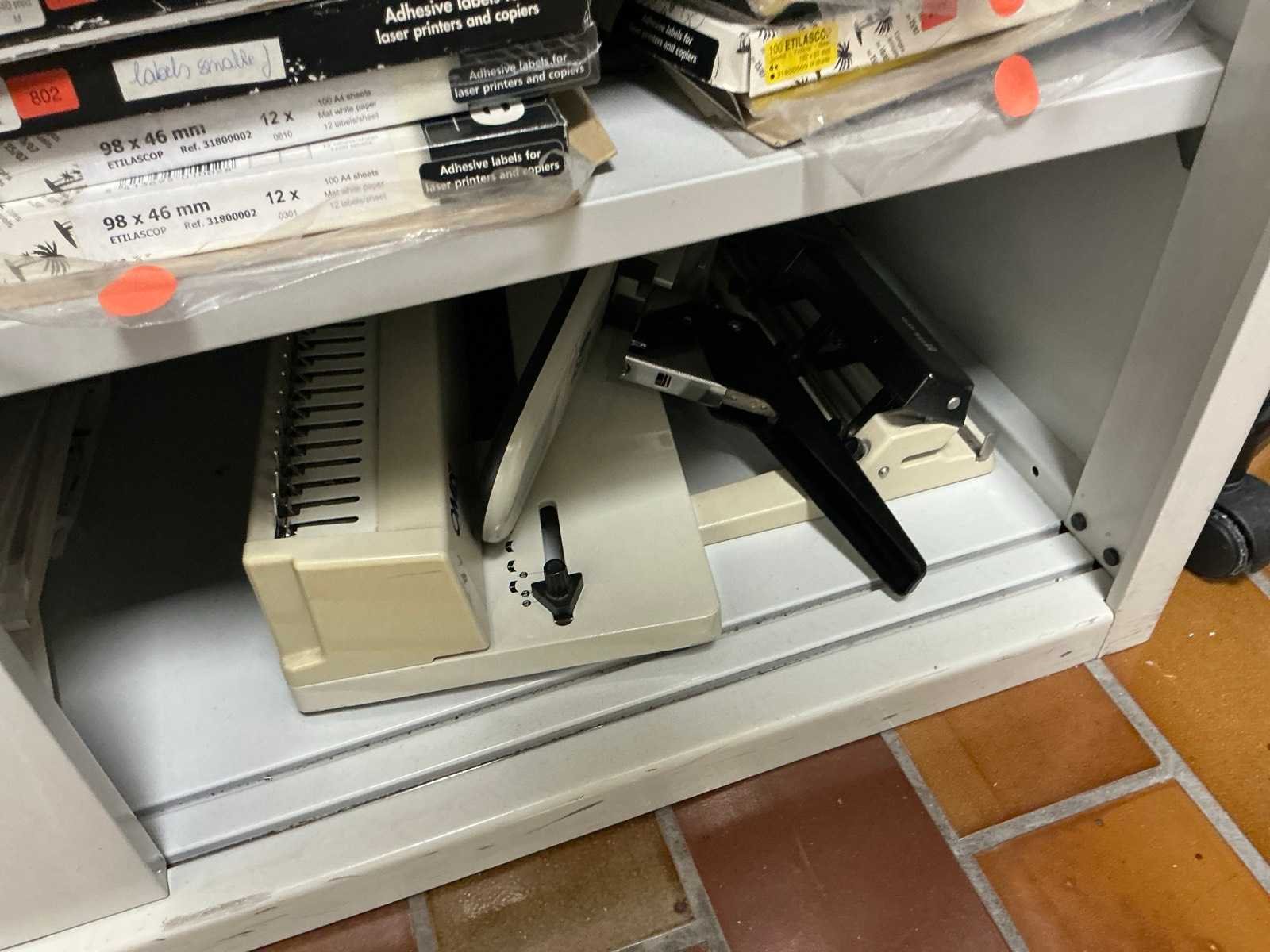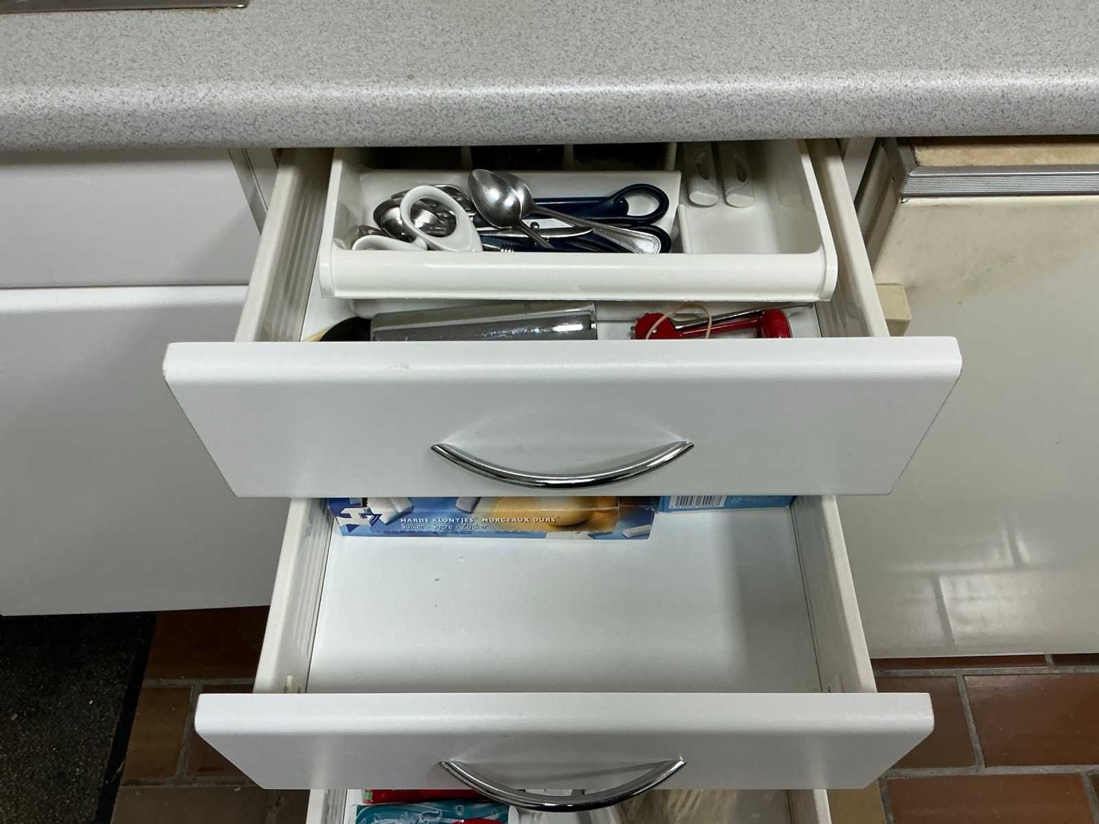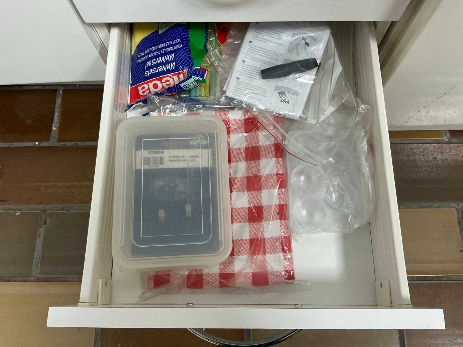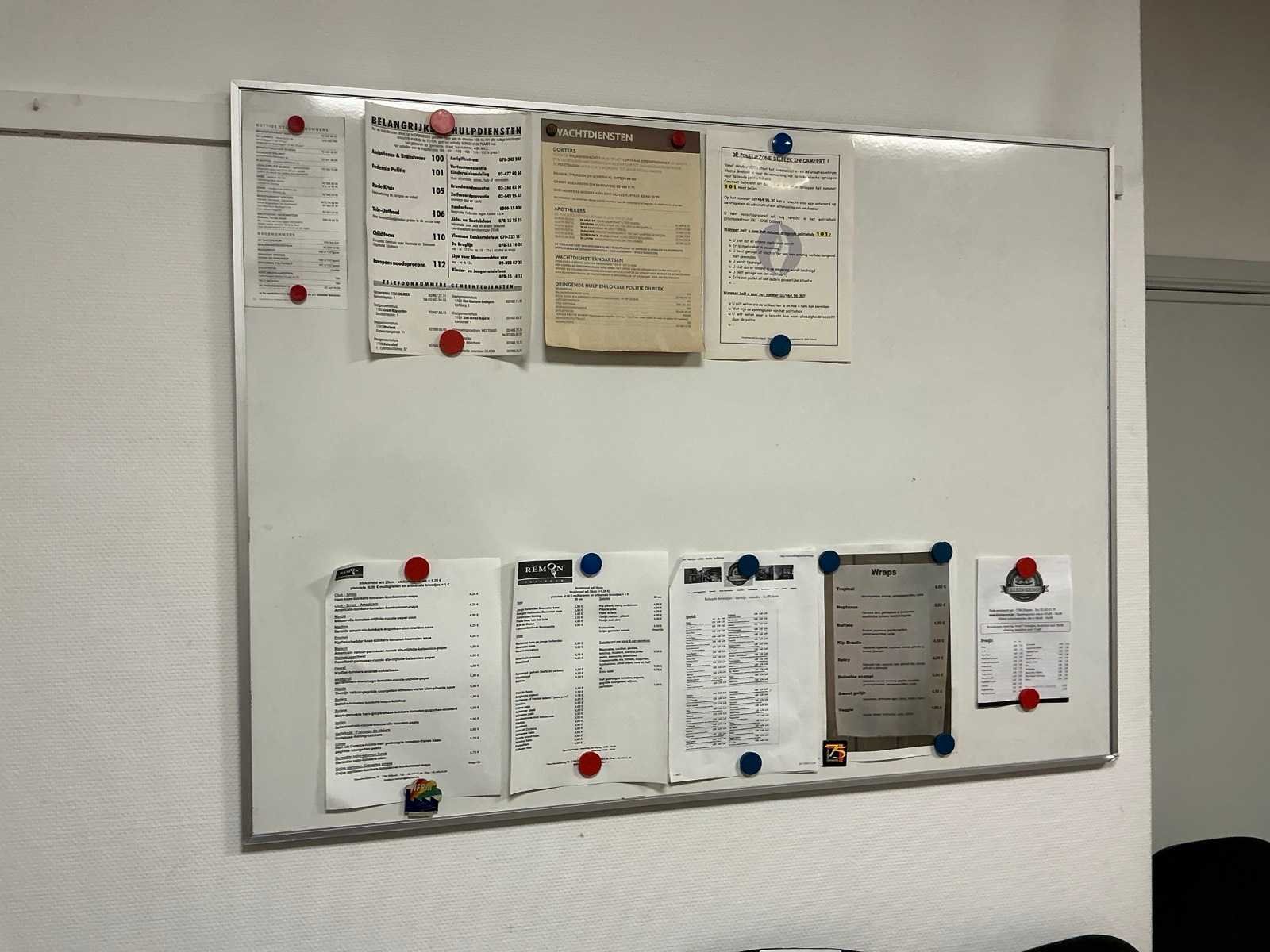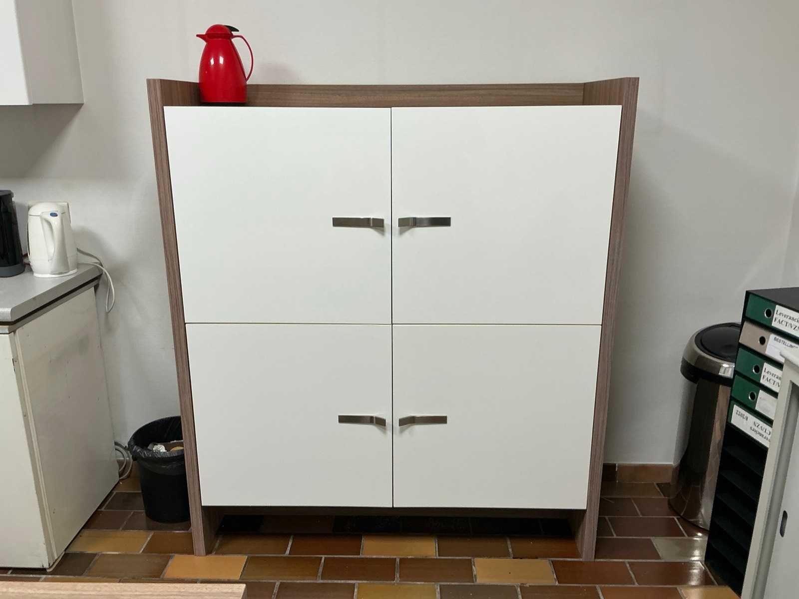 Bestaande uit koffiemachine Krups, waterkoker Tefal, wandkast voorzien van 4 deuren, afmeting: 140x55x155cm, partij divers servies en divers bestek, koelkast Zanker, tafelmodel, vuilnisemmer Brabantia, vakkenkast voorzien van 11 vakken en metalen dossierkast, laag model, met inhoud en whiteboard, uitgezonderd keuken (vast aan gebouw) Nee