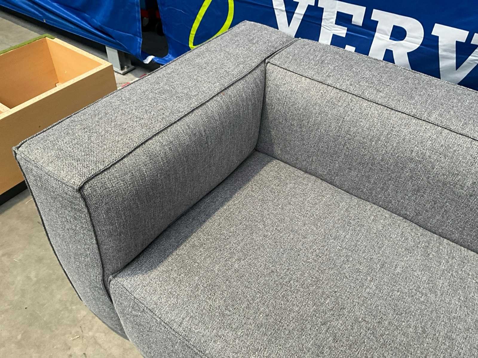 In 2 delen. inclusief 3 kussens. Nee Merk: WOOOD Lengte: 95cm Breedte: 249cm Hoogte: 73cm Materiaal: Stof