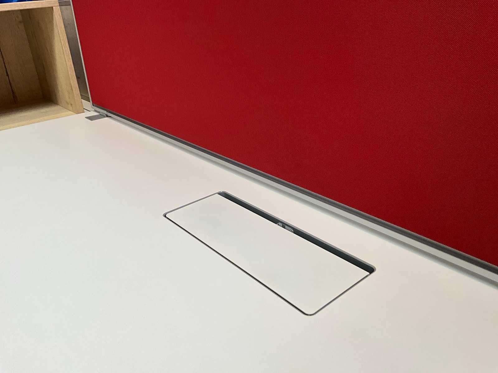 Bestaande uit 2x bureau 200x90cm met kabeldoorvoer, 1x akoestische scheidingswand en 2x houten opbergkast Sedus 43x90x112cm Nee Merk: Steelcase Lengte: 180cm Breedte: 200cm
