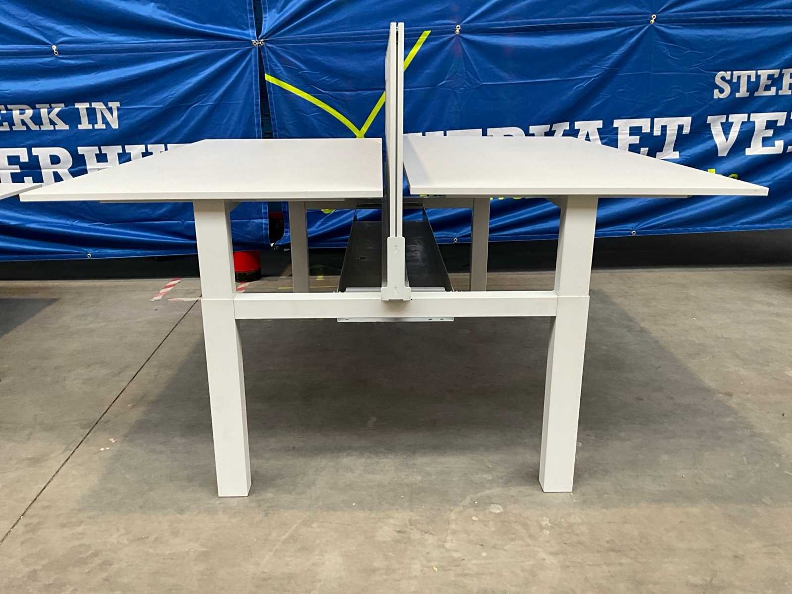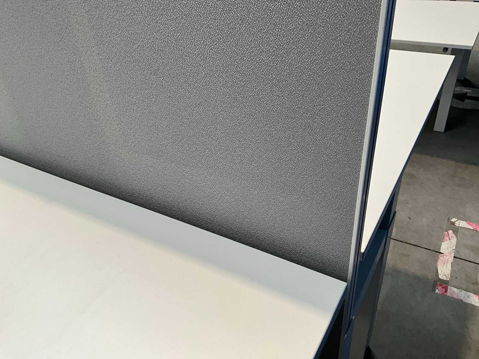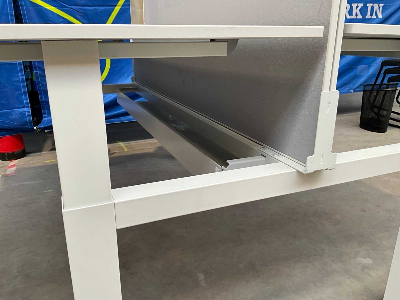 In hoogte verstelbaar, voorzien van akoestische scheidingswand Nee Lengte: 166cm Breedte: 160cm Materiaal: Metalen onderstel, houten blad