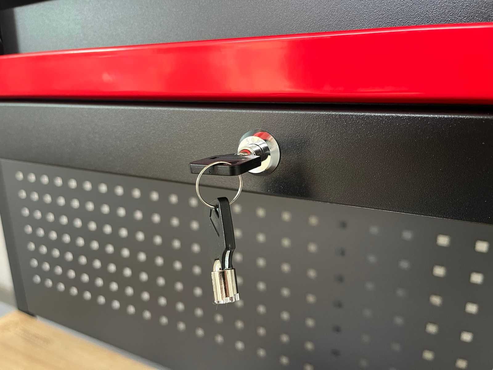 <li><strong>Aantal laden:</strong> 11 laden</li> <li><strong>Aantal gevulde laden:</strong> 9 gevulde laden</li> <li><strong>voorzien van:</strong> achterwand en bovenkasten</li> <li><strong>gereedschap:</strong> Chrome Vanadium</li> <li><strong>Inhoud:</strong> <ul> <li>3 dopsleutelsets (1/2”, 3/8” & 1/4”)</li> <li>momentsleutel (0-300 Nm)</li> <li>ring- steeksleutelset (6-32 mm)</li> <li>Inbussleutels (1,5-10 mm)</li> <li>schroevendraaiers (21 stuks)</li> <li>diverse tangen (9 stuks)</li> <li>T-greep Inbussleutels (2-10 mm)</li> <li>T-greep dopsleutels (8-14 mm)</li> <li>krachtdoppen (10-32mm)</li> <li>VDE-gereedschappen (8 stuks)</li> <li>2 hamers</li> <li>beitels en pendrijvers (7 stuks)</li> <li>LED-lamp, hakenset,…</li> <li>enzovoort...</li> </ul> </li> <li><strong>afmetingen:</strong> 104 x 46 x 196 cm </li> <li><strong>hoogte werkblad:</strong> 110 cm werkhoogte</li> <li><strong>Staat:</strong> ongebruikt, in de originele verpakking</li> Nee Merk: Stahlgruppe Type: SG42 Met inhoud: true
