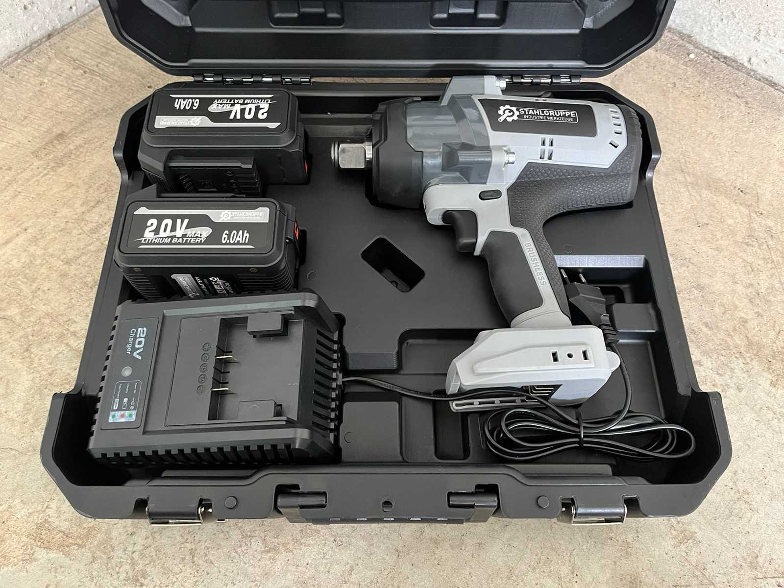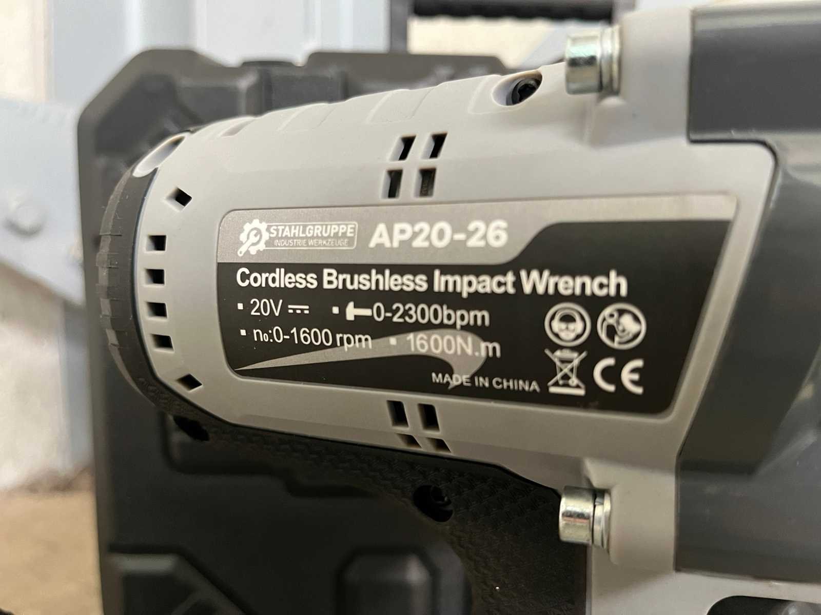 <li><b>Accu slagmoersleutel</b></li> <li><b>Koppel:</b> 1600 Nm</li> <li><b>Voltage:</b> 20 volt</li> <li><b>Accu:</b> 6.0 Ah accu</li> <li><b>dopmaat:</b>geschikt voor 3/4” doppen</li> <li><b>Toeren per minuut:</b> 1600 RPM</li> <li><b>slagen per minuut:</b> 2300 BPM</li> <li><b>Aantal accu’s:</b> 2 accu’s</li> <li><b>Acculader:</b> Acculader inbegrepen</li> <li><b>Staat:</b> Ongebruikt, in de originele verpakking</li> Nee Merk: Stahlgruppe