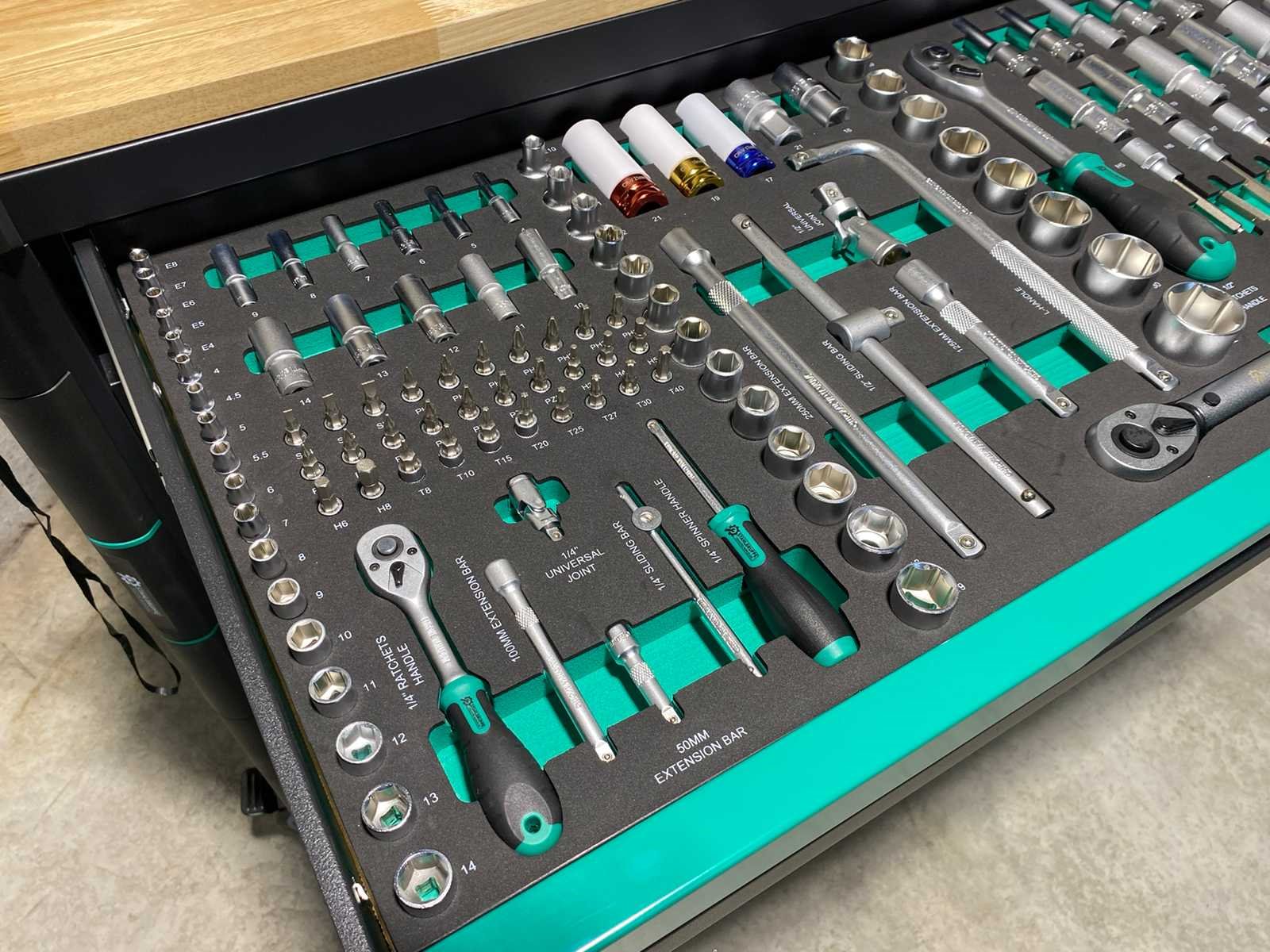 <li><strong>Merk:</strong> Stahlgruppe</li> <li><strong>Type:</strong> SG23</li> <li><strong>Aantal laden:</strong> 13 laden</li> <li><strong>Aantal gevulde laden:</strong> 11 gevulde laden</li> <li><strong>Materiaal:</strong> Chrome Vanadium</li> <li><strong>Inhoud:</strong> <ul> <li>2 dopsleutelsets (1/2” & 1/4”)</li> <li>momentsleutel (40-220 Nm)</li> <li>ring- steeksleutelset (6-32 mm)</li> <li>ringratel-steeksleutelset (8-19 mm)</li> <li>ring-ringsleutelset (6-32 mm)</li> <li>Inbussleutels (1,5-10 mm)</li> <li>Torxsleutels (T8-T70)</li> <li>schroevendraaiers (21 stuks)</li> <li>diverse tangen (9 stuks)</li> <li>schuifmaat (0-150 mm * 0,02 mm)</li> <li>beitels en pendrijvers (9 stuks)</li> <li>diverse hamers (3 stuks)</li> <li>T-greep Torxsleutels (T15-T45)</li> <li>T-greep Inbussleutels (2-10 mm)</li> <li>Chroom-Molybdeen krachtdoppen (10-24 mm)</li> <li>T-greep dopsleutels (7-14 mm)</li> <li>VDE-gereedschappen (10 stuks)</li> <li>vijlen en hakenset (8 stuks)</li> <li>enzovoort...</li> </ul> </li> <li><strong>Staat:</strong> ongebruikt, in de originele verpakking</li> Nee Merk: Stahlgruppe Type: SG23