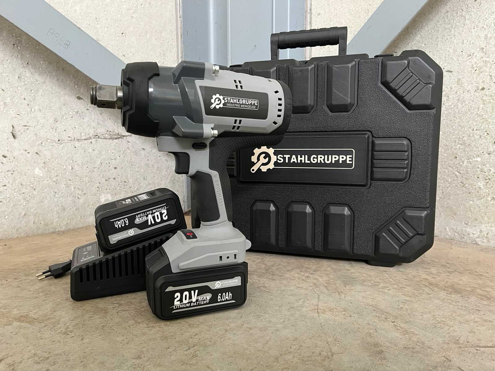 <li><b>Accu slagmoersleutel</b></li> <li><b>Koppel:</b> 1600 Nm</li> <li><b>Voltage:</b> 20 volt</li> <li><b>Accu:</b> 6.0 Ah accu</li> <li><b>dopmaat:</b>geschikt voor 3/4” doppen</li> <li><b>Toeren per minuut:</b> 1600 RPM</li> <li><b>slagen per minuut:</b> 2300 BPM</li> <li><b>Aantal accu’s:</b> 2 accu’s</li> <li><b>Acculader:</b> Acculader inbegrepen</li> <li><b>Staat:</b> Ongebruikt, in de originele verpakking</li> Nee Merk: Stahlgruppe
