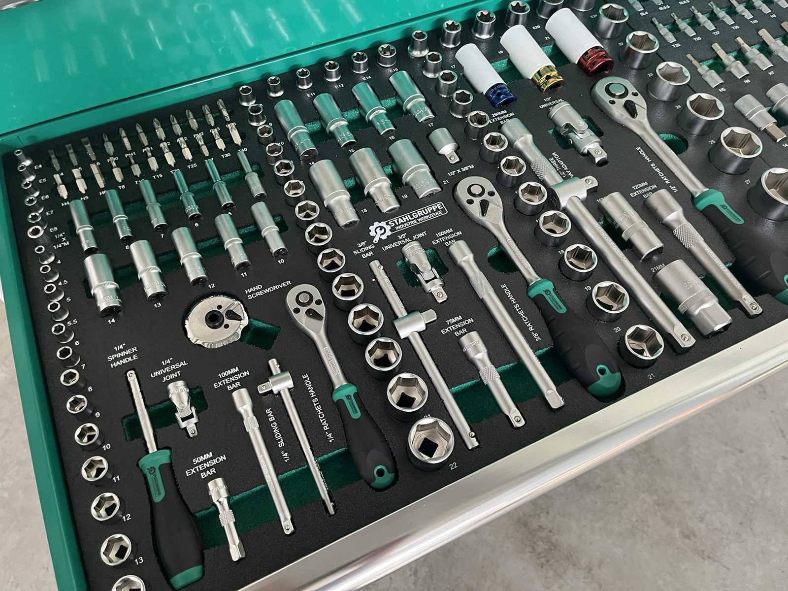 <li><b>Heavy Duty gereedschapswagen</b></li> <li><b>gebruik:</b> voor professionals</li> <li><b>aantal laden:</b> 11 laden</li> <li><b>aantal gevulde laden:</b> 9 gevulde laden</li> <li><b>gereedschap:</b> chroom-vanadium gereedschap</li> <li><b>inhoud:</b> <ul> <li>29-delige ring-steeksleutel set (6 mm - 50 mm)</li> <li>3 ratelsleutel sets met doppen & bitsen (1/4”, 3/8” & 1/2”)</li> <li>11-delige ring-ringsleutel set (6*7 mm - 30*32 mm)</li> <li>verstelbare moersleutel</li> <li>12-delige tangen set</li> <li>2 hamers & 4 vijlen</li> <li>puntslag en beitel set</li> <li>12 schroevendraaiers</li> <li>inbussleutels, Torxsleutels, precisiegereedschap</li> <li>21-delige T-sleutelset</li> <li>34-delige krachtdoppen set (12 mm - 50 mm) + Torx & inbus doppen & ratelsleutel 3/4,”</li> <li>LED-lamp, zaag, schaar, mes, meetgereedschappen</li> <li>enzovoort...</li> </ul> </li> <li><b>staat:</b> ongebruikt, in de originele verpakking</li> <li><b>afmetingen:</b> L 140 x B 60 x H 110 cm</li> Nee Merk: Stahlgruppe Type: SG56