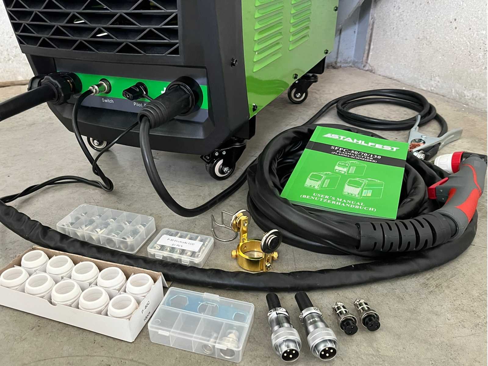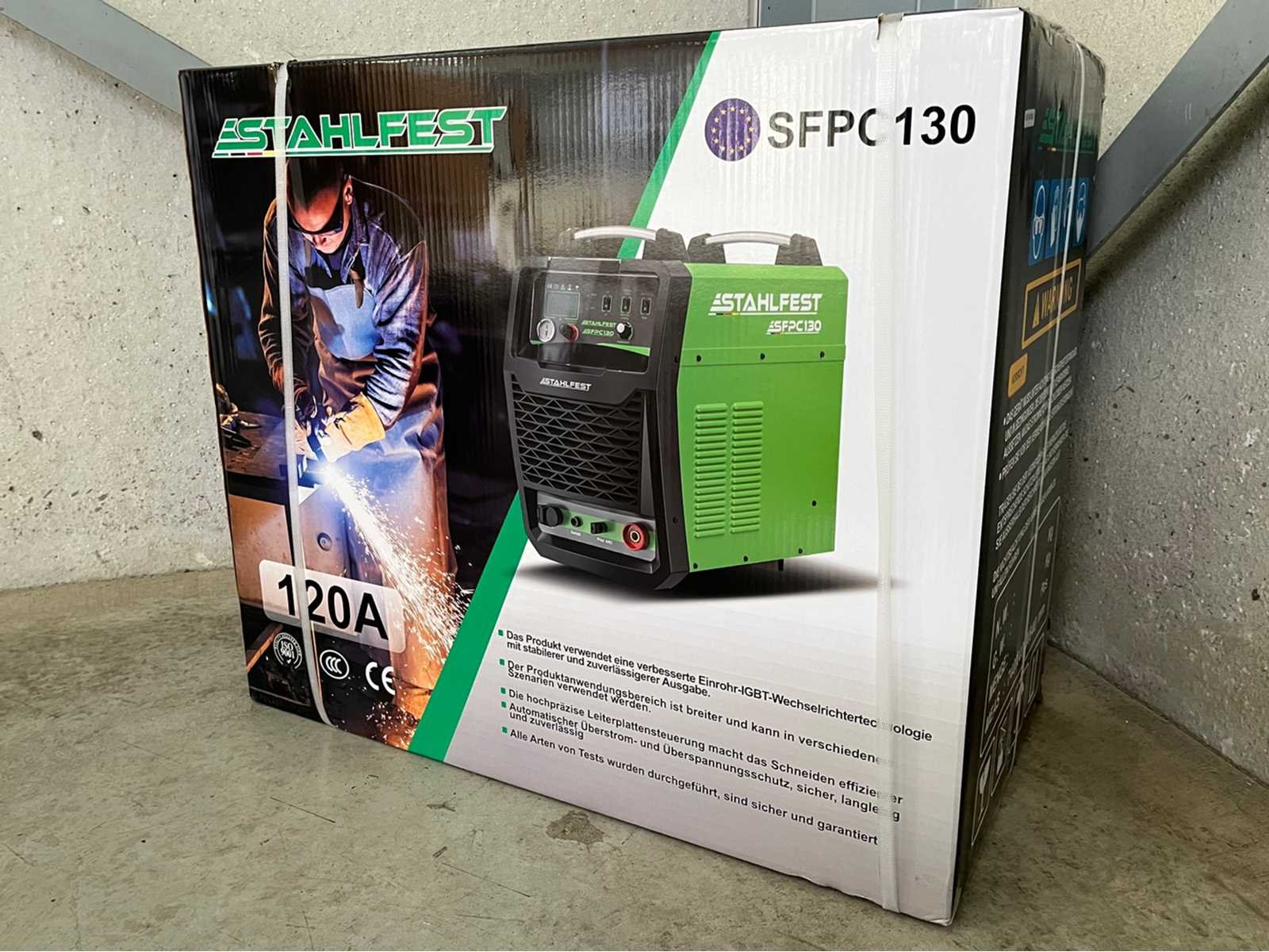 <p><strong>perslucht plasmasnijmachine</strong></p> <li><strong>merk:</strong> Stahlfest</li> <li><strong>type:</strong> SFPC130</li> <li><strong>maximale snijdikte:</strong> max. snijdikte 45 mm</li> <li><strong>aansluiting:</strong> 380 volt</li> <li><strong>regelbare stroomsterkte:</strong> 30-120 A</li> <li><strong>starten:</strong> voorzien van:<strong>Pilot Arc</strong></li> <li><strong>inschakelduur:</strong> 60% inschakelduur (120 A)</li> <li><strong>technologie:</strong> IGBT-technologie</li> <li><strong>beveiliging:</strong> zekeringautomaat</li> <li><strong>extra functie:</strong> stekker voor CNC-sturing</li> <li><strong>inclusief:</strong> plasmatoorts, toebehoren en beschermhoes</li> <li><strong>niet inbegrepen:</strong> stroomkabel en 380 volt stekker</li> <li><strong>staat:</strong> ongebruikt en in de originele verpakking</li> Nee Merk: Stahlfest Type: SFPC130