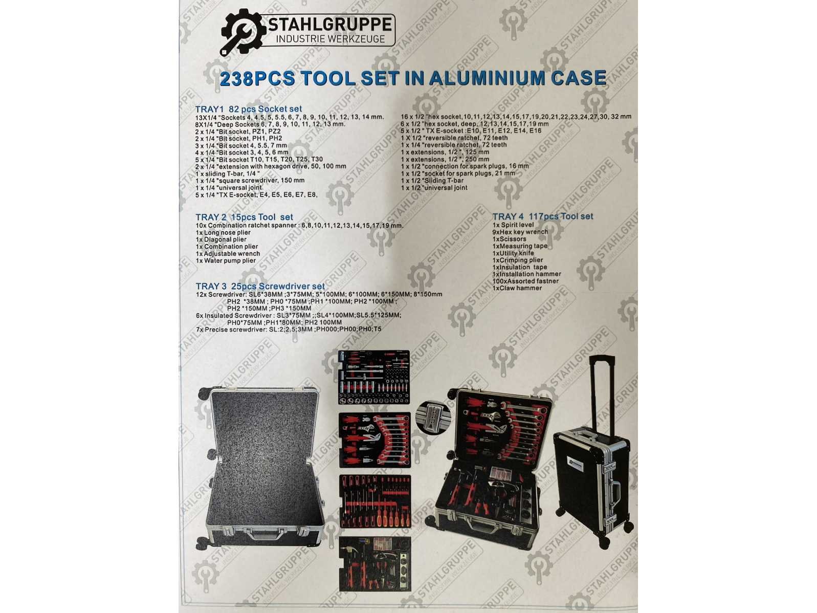 Stahlgruppe gevulde gereedschapskoffer