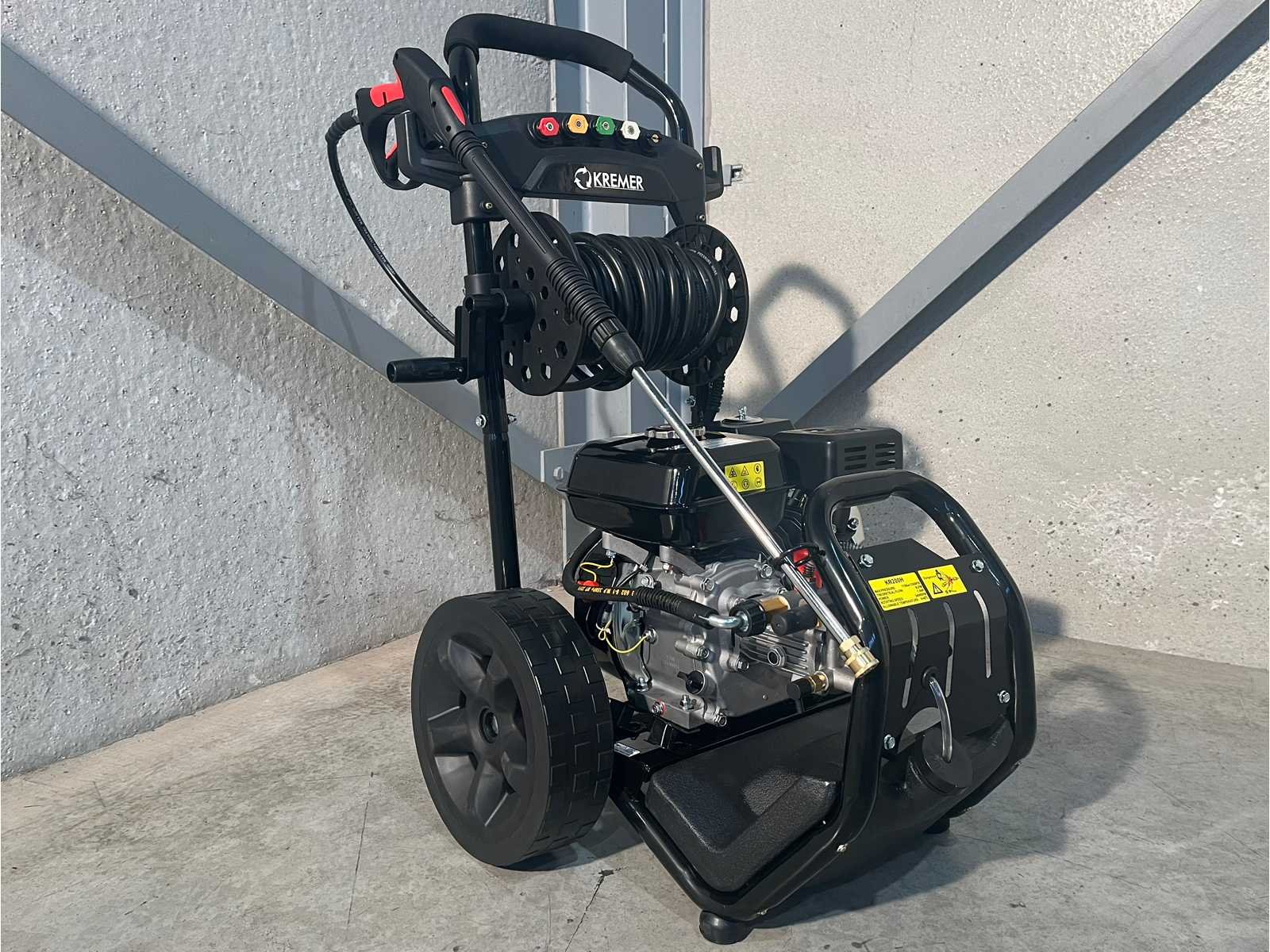 <li><b>Benzine hogedrukreiniger</b></li> <li><b>Merk:</b> Kremer</li> <li><b>Werkdruk:</b> 170 bar</li> <li><b>Hogedrukslang:</b> 10 meter hogedrukslang</li> <li><b>Capaciteit:</b> 540 liter per uur</li> <li><b>Motor:</b> 4-takt benzinemotor</li> <li><b>Starten:</b> Trekstarter</li> <li><b>Vermogen:</b> 4.8 kW</li> <li><b>Toerental:</b> 3400 toeren per minuut</li> <li><b>Mondstukken:</b> 5 mondstukken</li> <li><b>Voorzien van:</b> Tank voor schoonmaakmiddel</li> <li><b>Inclusief:</b> Aanzuigslang met waterfilter</li> <li><b>Eigenschappen:</b> Grote wielen, zeeptank, slanghaspel… </li> <li><b>Staat:</b> Ongebruikt in de originele verpakking</li> Nee Merk: Kremer Type: KR200H