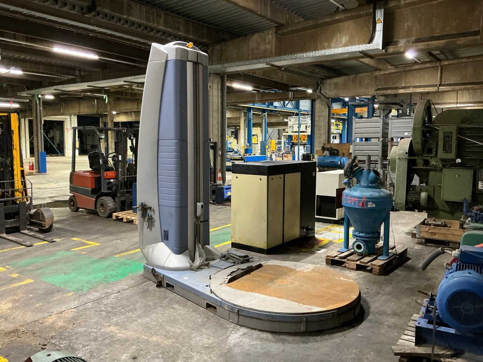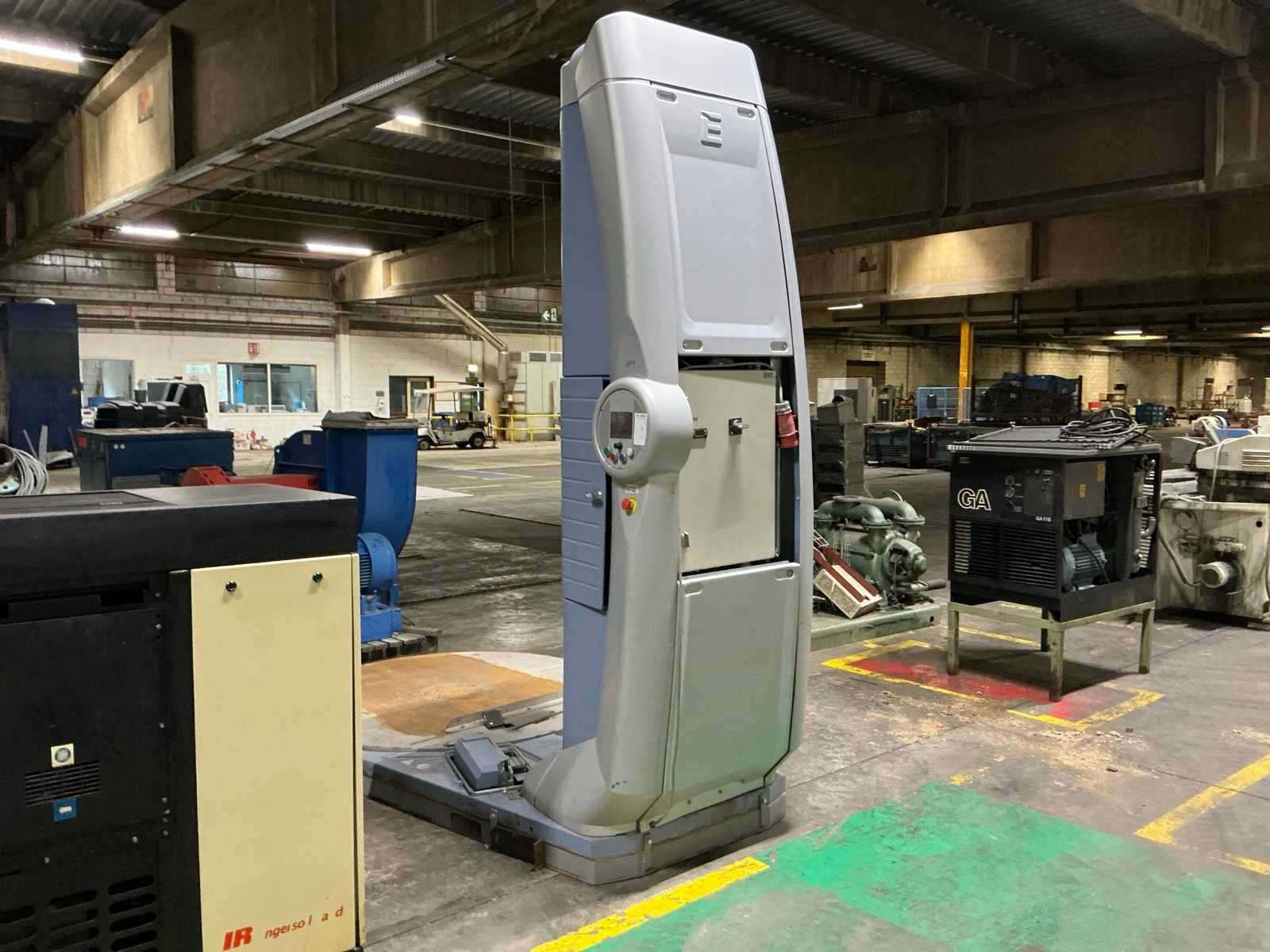 <Br> - Vermogen: 2100W. - Capaciteit: 2000kg. - Diameter plateau: circa 165cm. Nee Merk: Epipack Type: SpinoWraptor pro Graphic/dps Bouwjaar: 2009 Serienummer: 4758 Aansluiting: 400V Eigen gewicht: 780kg Totale afmeting L: 2900mm Totale afmeting Breedte: 1730mm Totale afmeting Hoogte: 3300mm
