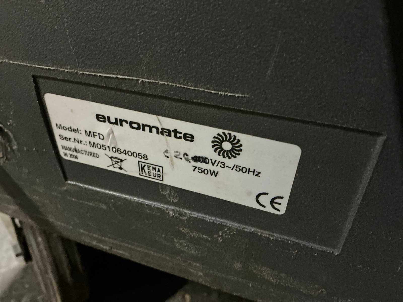 Nee Merk: Euromate Type: MFD Serienummer: M0510640058 Mobiel: true Armlengte: 3800mm Aansluiting: 400V Afmeting l: 1200mm Afmeting b: 770mm Afmeting h: 2650mm