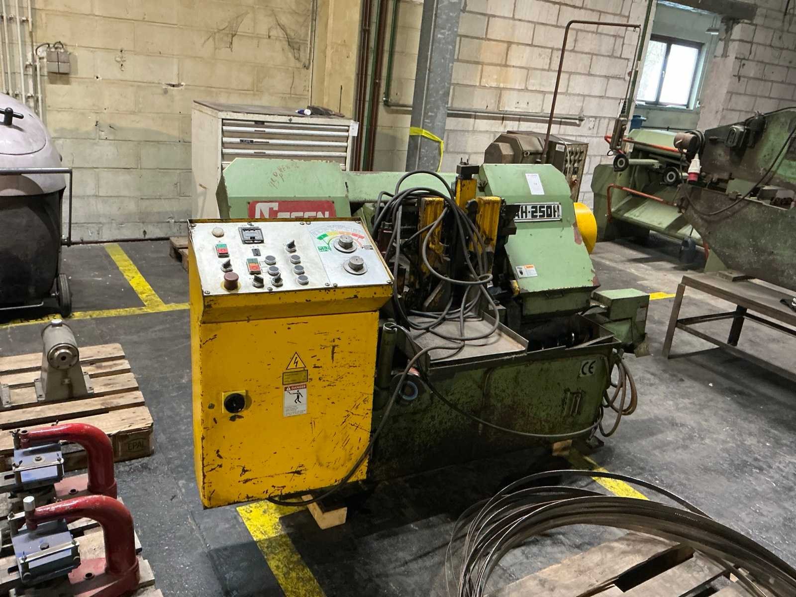Nee Merk: Cosen Type: AH-250H Zaagblad afm. l: 3505mm Zaagblad afm. b: 25mm Aansluiting: 400V Machinegewicht: 1200kg Afmeting l: 2000mm Afmeting b: 2150mm Afmeting h: 1350mm