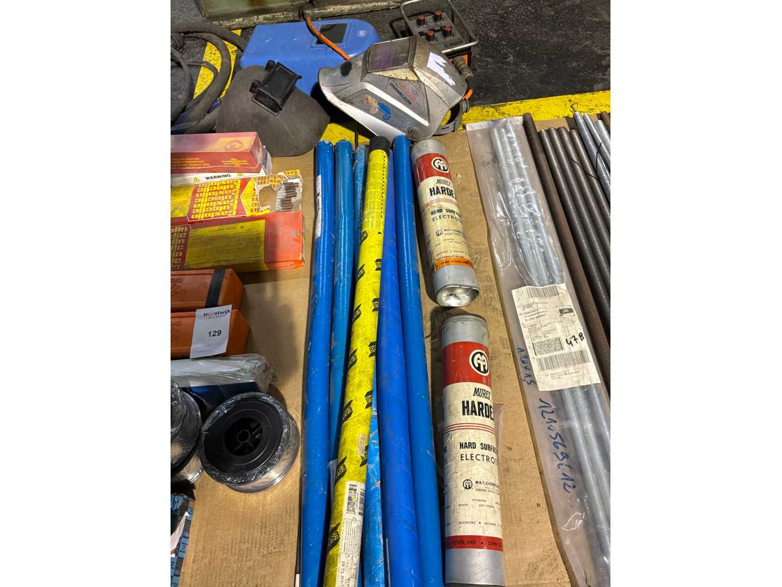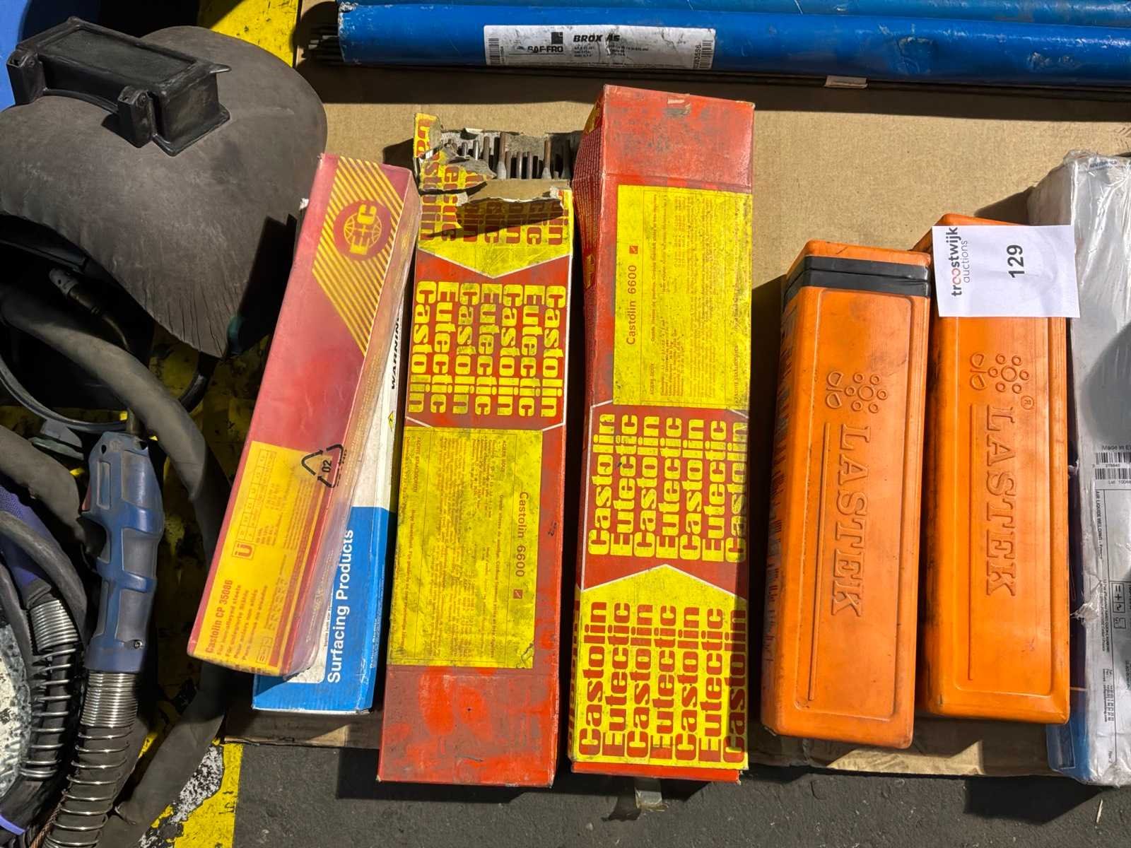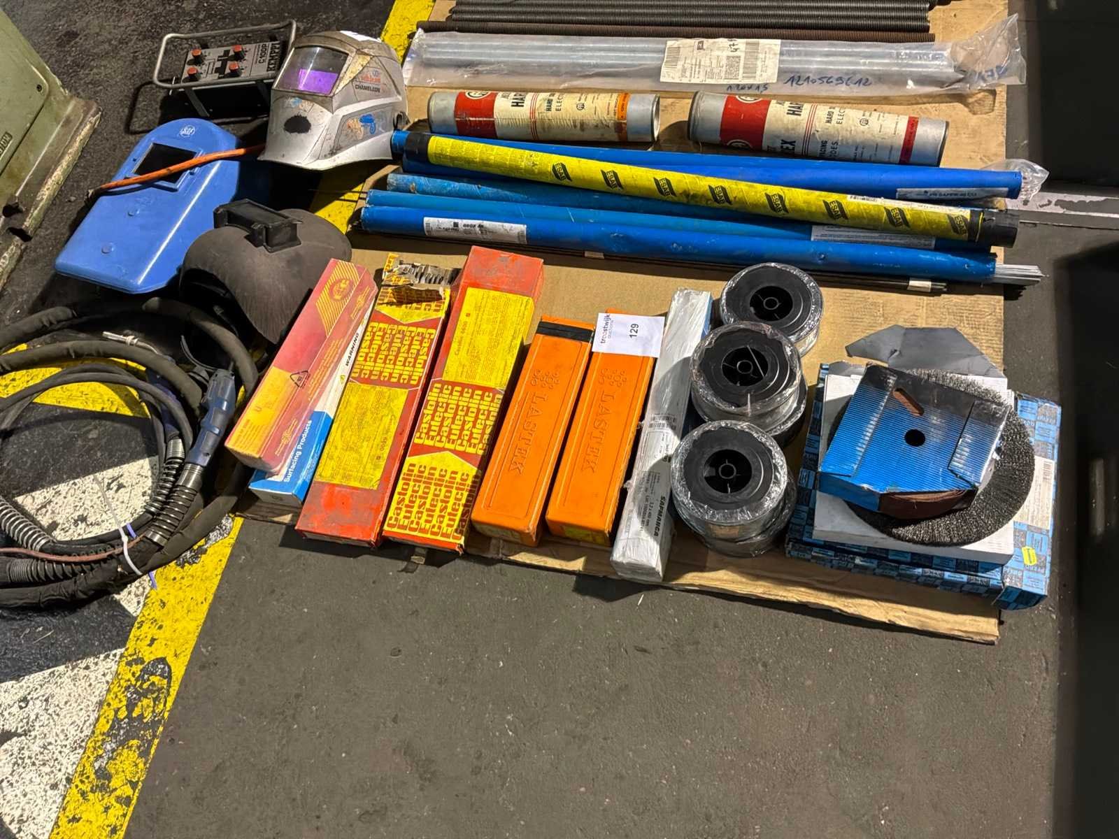 Waaronder verschillende elektrodes, lasstangen, lasdraad, laskappen (3x), lastoorts (2x) Nee