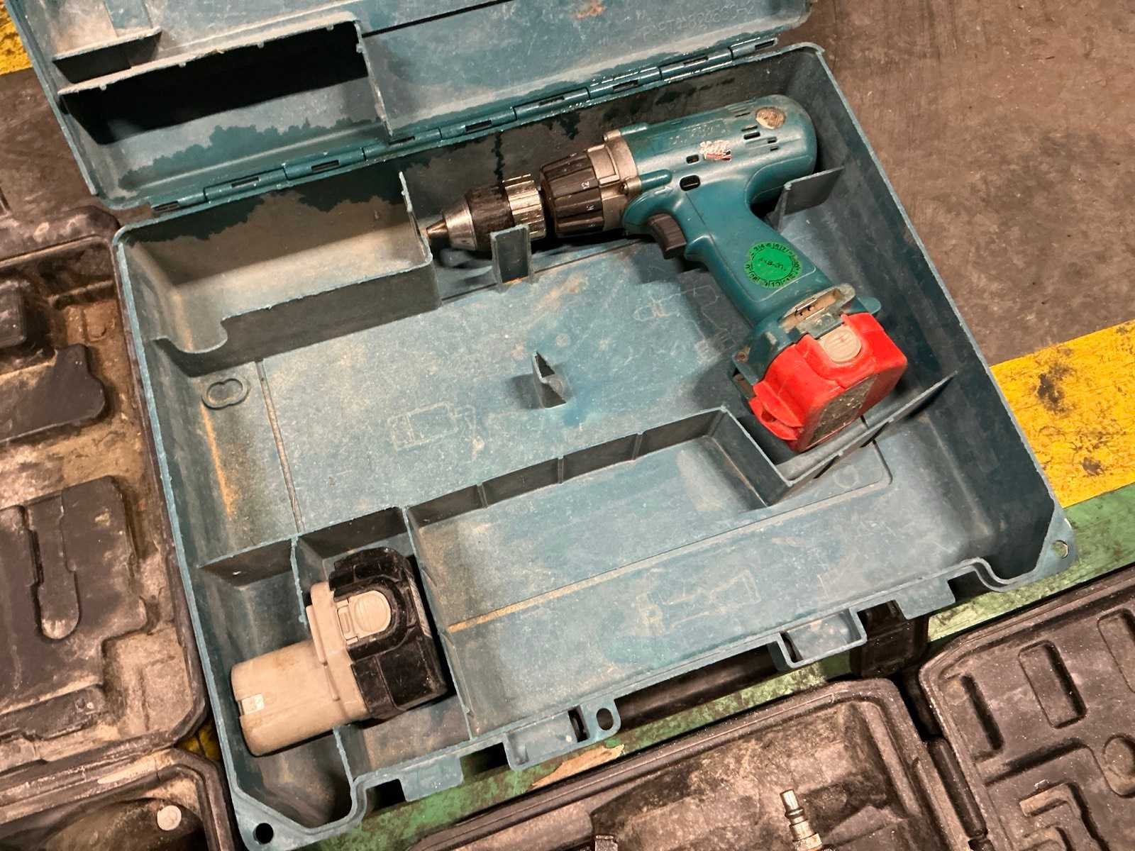 Zijnde Atlantic Z1C-HW-32B elektrische boorhamer, Airpress pneumatische tacker, Makita accu-schroefboormachine met 2x accu, geen lader; in 3 koffers Nee