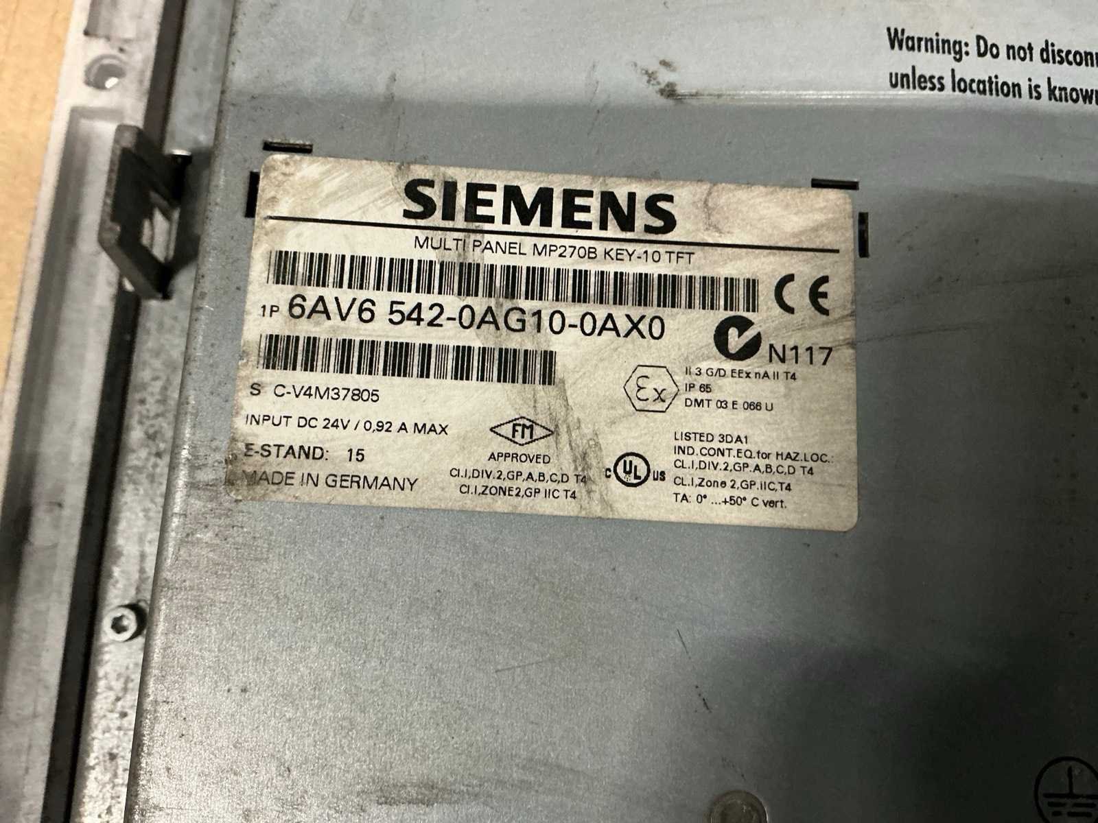 6AV6 542-0AG10-0AX0 Nee Merk: Siemens Type: Simatic MP270B Key-10’’ TFT